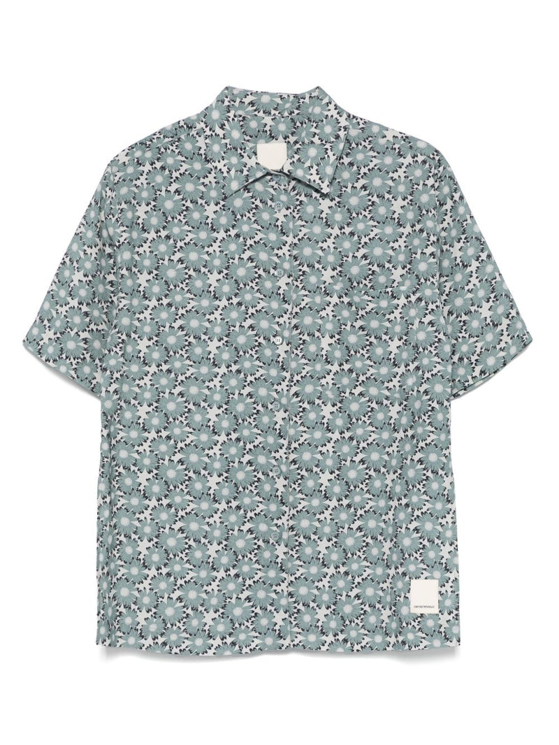 cornflower blue front button fastening short side slits chest patch pocket logo patch to the front m/c, stampa Printed linen blend shirt Size and Fit - This piece fits true to size. We recommend you get your regular size. Model is 1,75m / 5ft 8in wearing size 40 (IT)