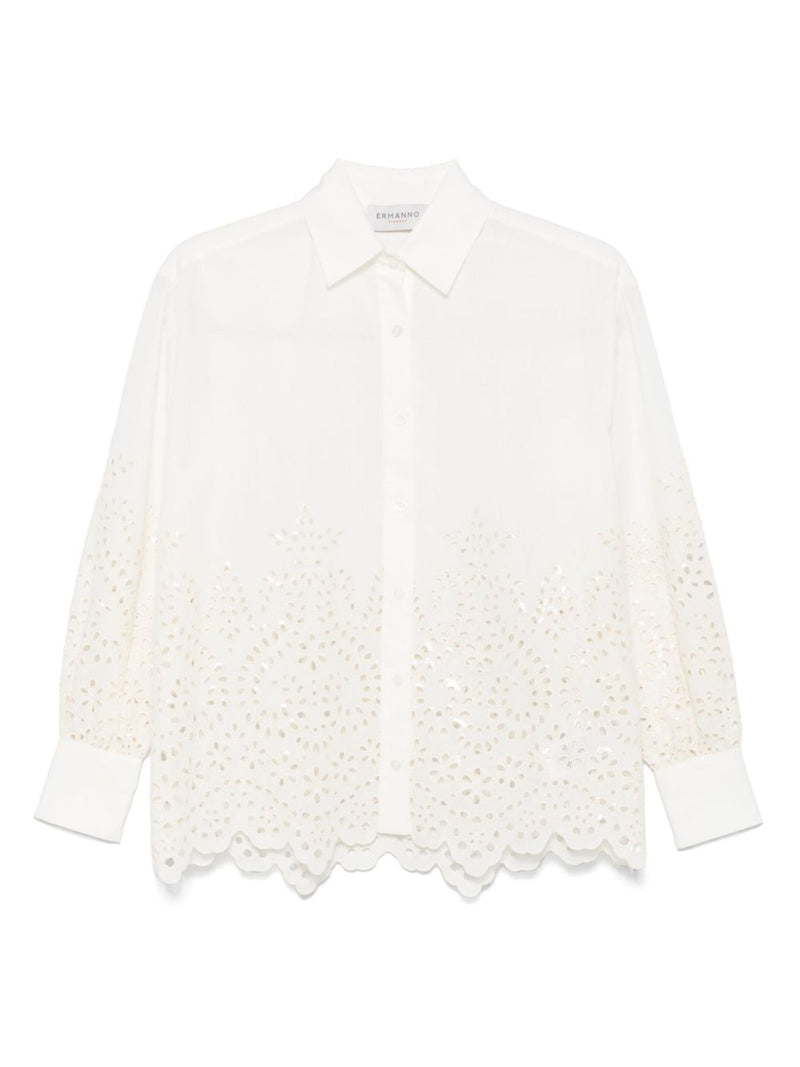 White Cotton Embroidered Shirt — Ermanno Firenze
