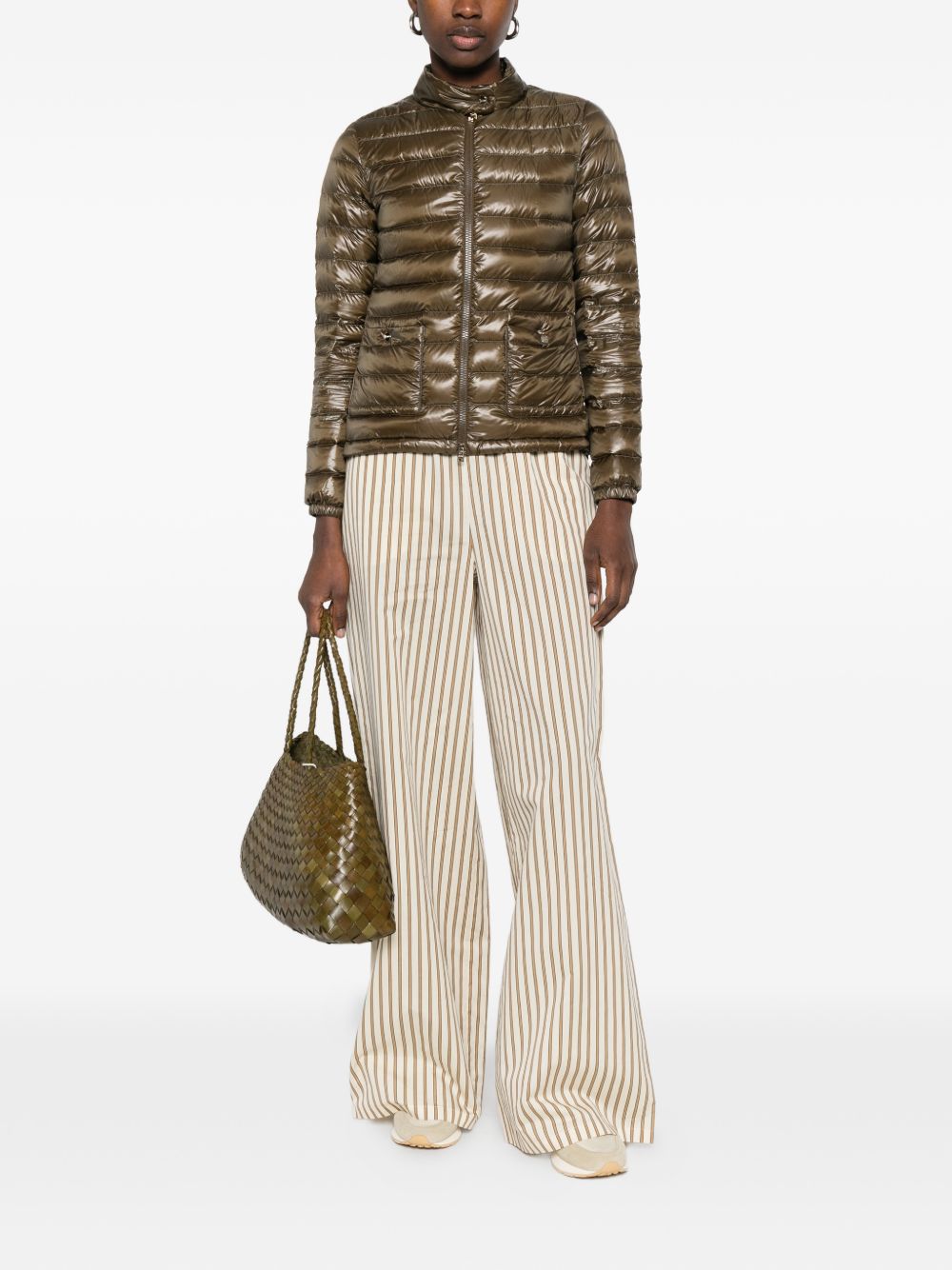 military green zip fastening front patch pocket long sleeves elasticated cuffs Nylon short down jacket