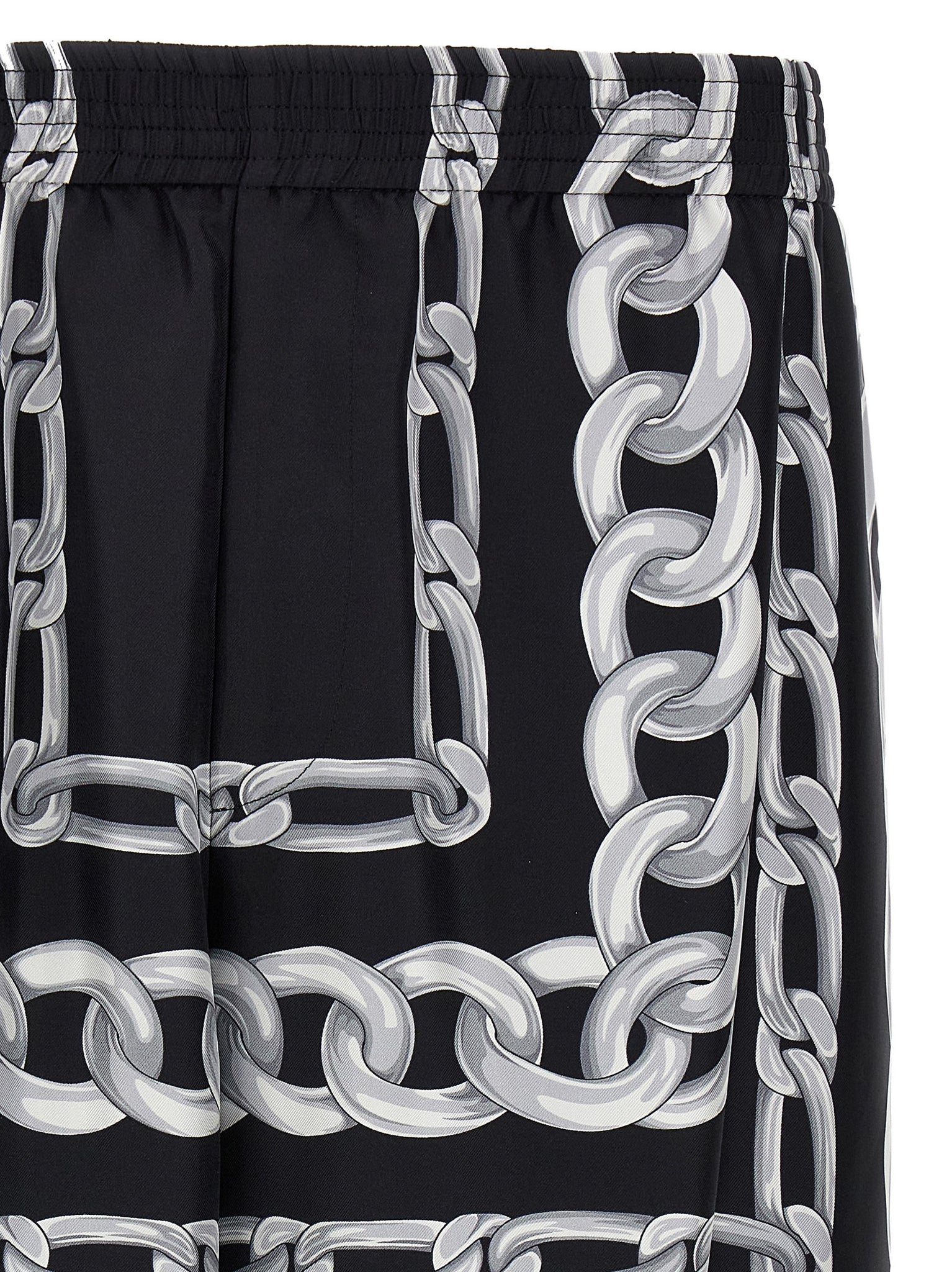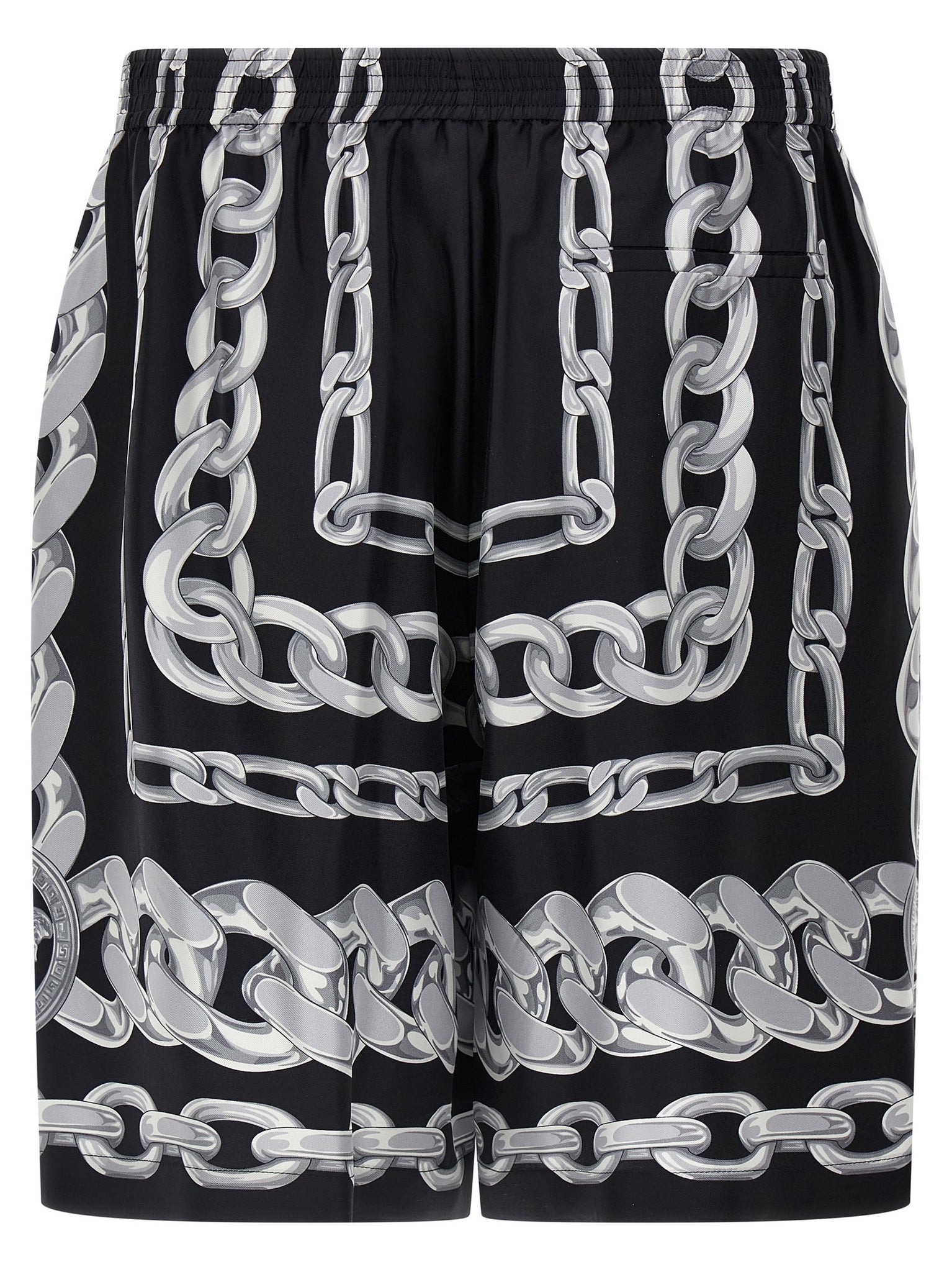 Bermuda shorts in silk twill with 'Medusa Chains' print, elastic waistband, pockets, wide leg. Size and Fit - true to size fit