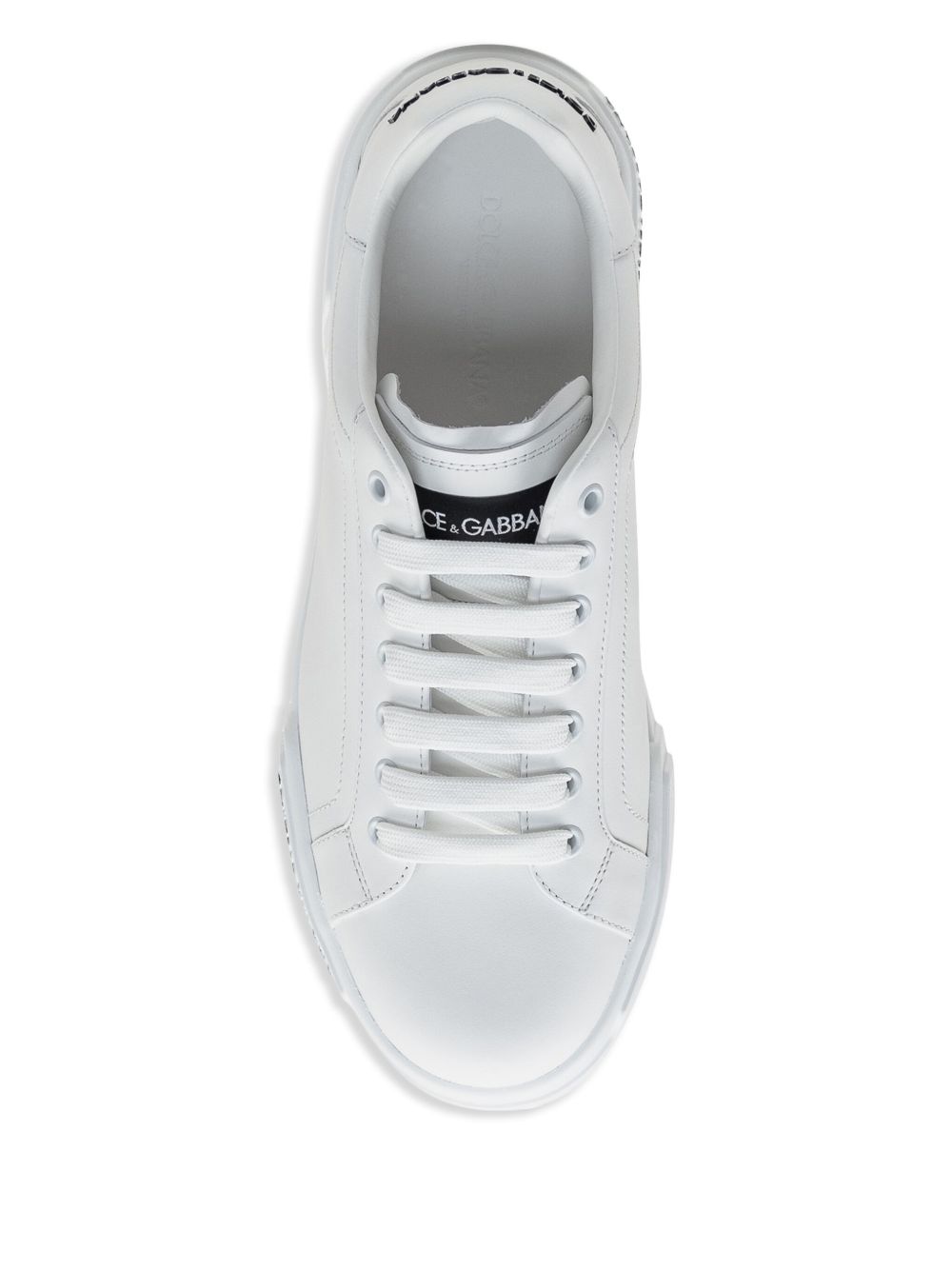 white front lace-up fastening round toe rubber sole logo embellishment logo suola Portofino leather sneakers Size and Fit - Heel 0,8 in / 2 cm; Platform 0,4 in / 1 cm