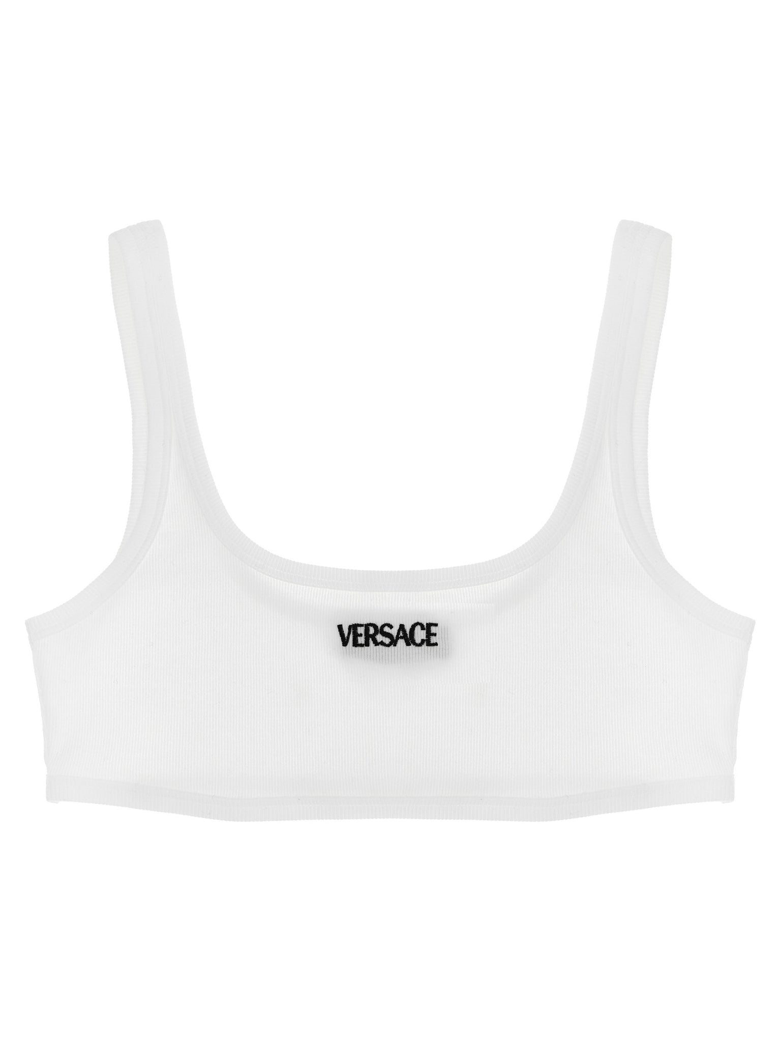 Ribbed cotton bra with front 'versace logo' embroidery, Round neckline, Thin straps. Size and Fit - true to size fit