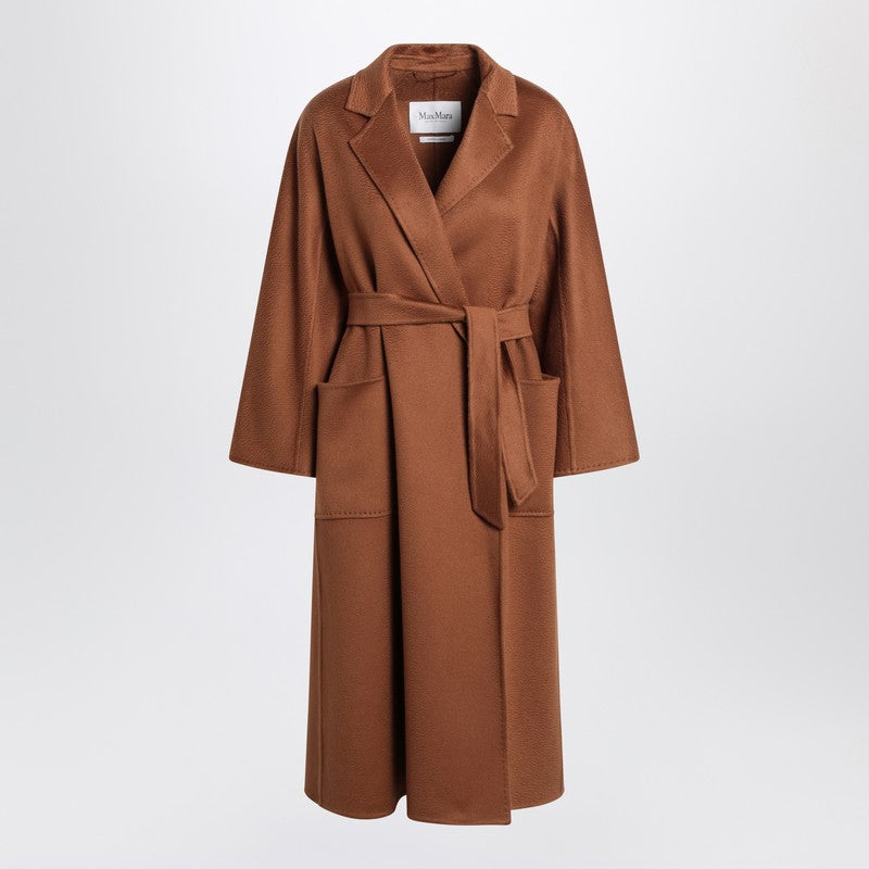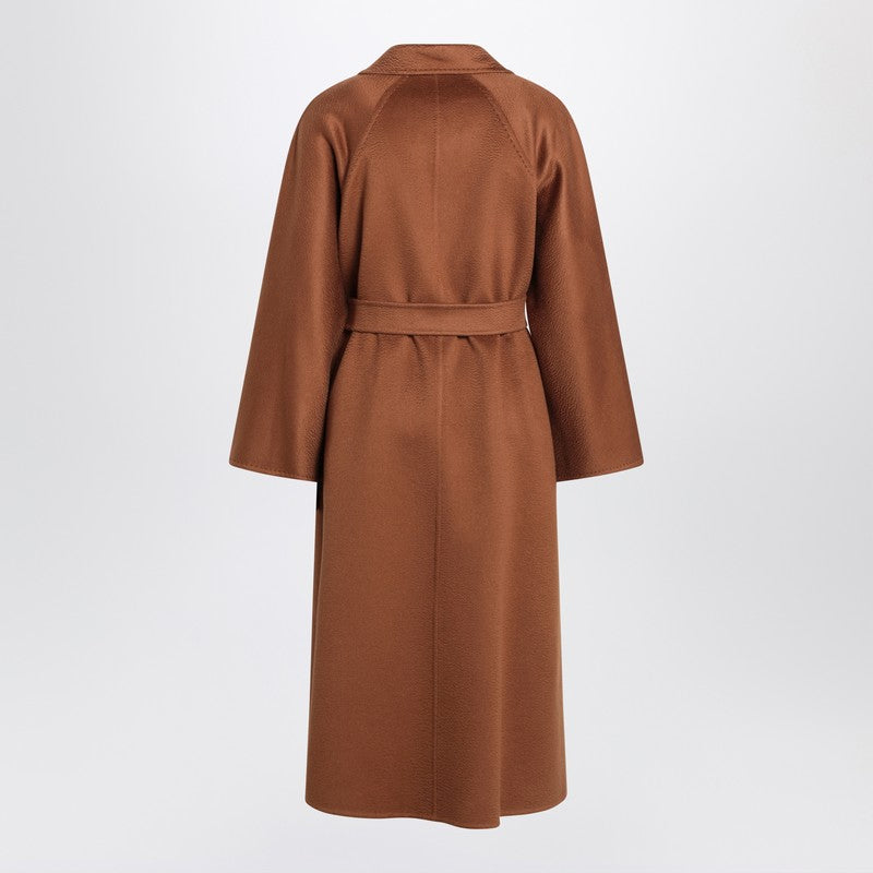Max Mara brown cashmere wrap coat — belted robe silhouette