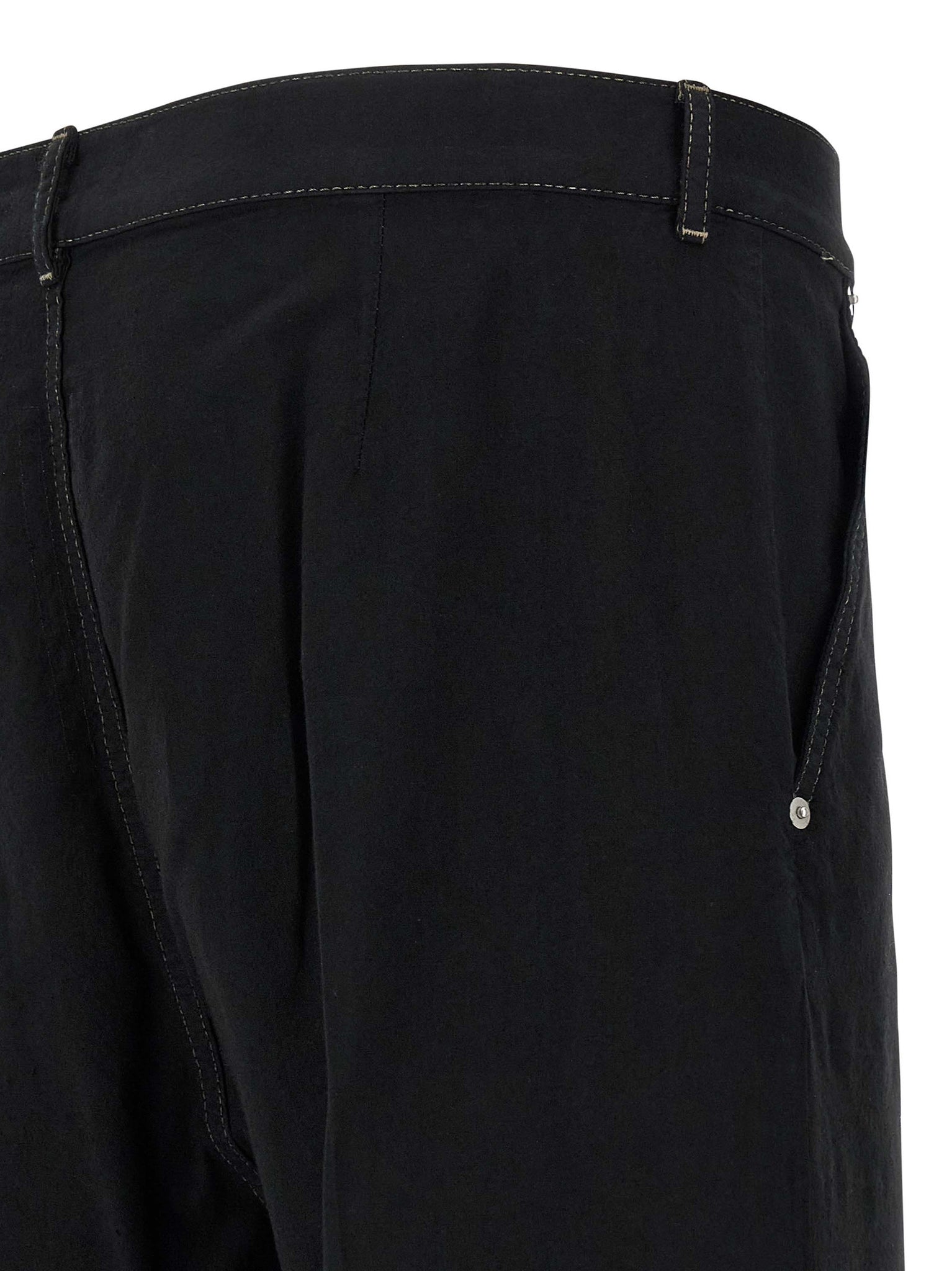 'Joris' 13oz blackety denim pants and cotton canvas overdyed and then treated with a matte wax finish, front button closure, pockets, wide leg with rough and worn edging on the inside of the right leg and on the outside of the left side in tone-on-tone fabric, fringes on the leg bottom. Size and Fit - true to size fit
