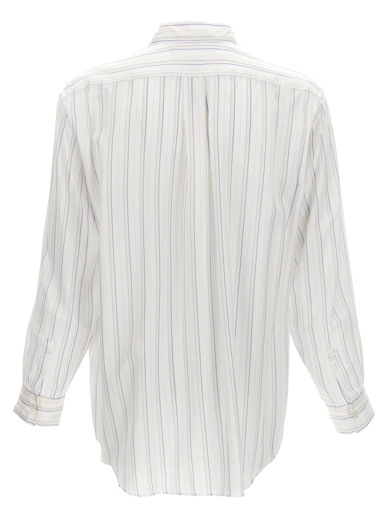 'Forever' striped cupro shirt with front pocket, button closure, long cuffed sleeves. Size and Fit - true to size fit
