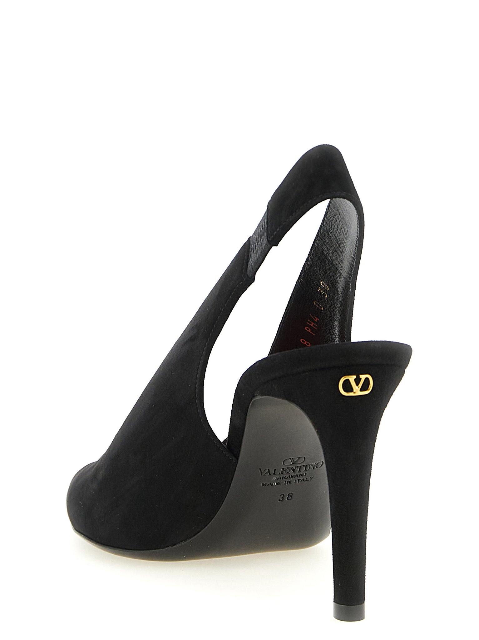 'révélé' suede slingbacks, Open-toe pointed model with transparent polymer material band, Heel with antiqued brass finish metal 'vlogo signature' applied, Leather sole. Size and Fit - Eu woman - heels: 8,5 cm
