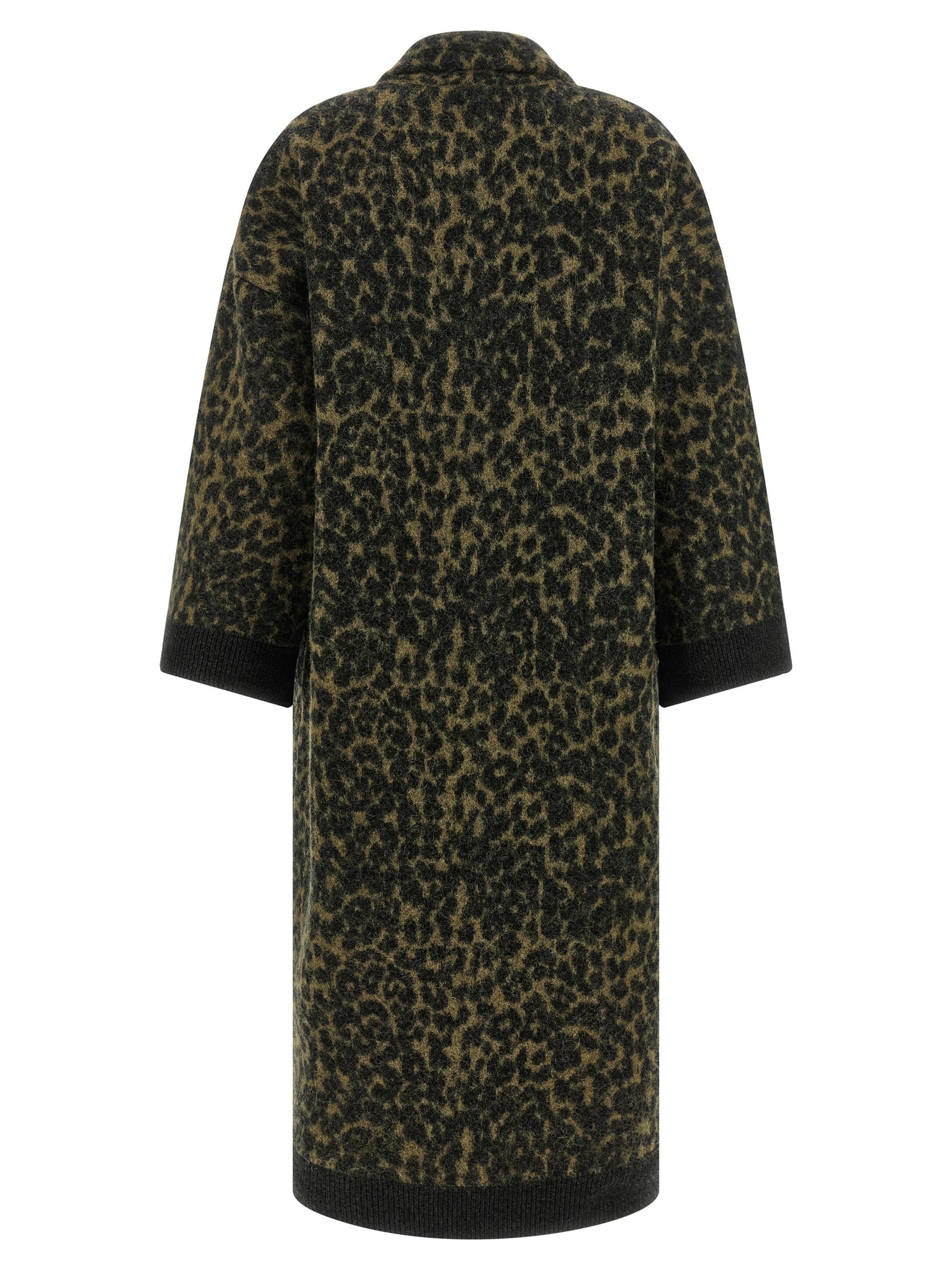 Long coat in animal print wool blend, High neck, Front snap button closure, Side pockets, Long sleeves. Size and Fit - True to size fit