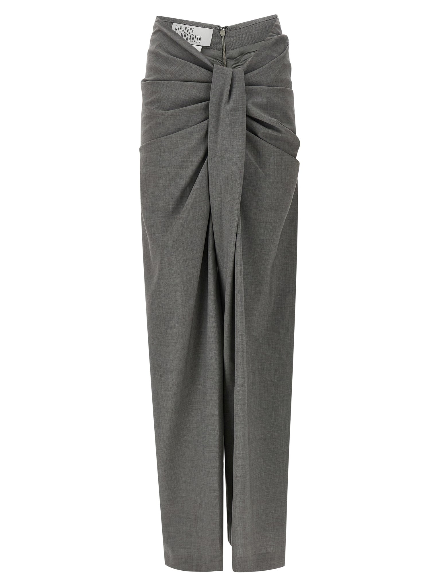 Cool wool mélange trousers, Front draping at the waist, Wide and straight leg, Asymmetrical waist, Back zip closure. Size and Fit - true to size fitMade in: Italy