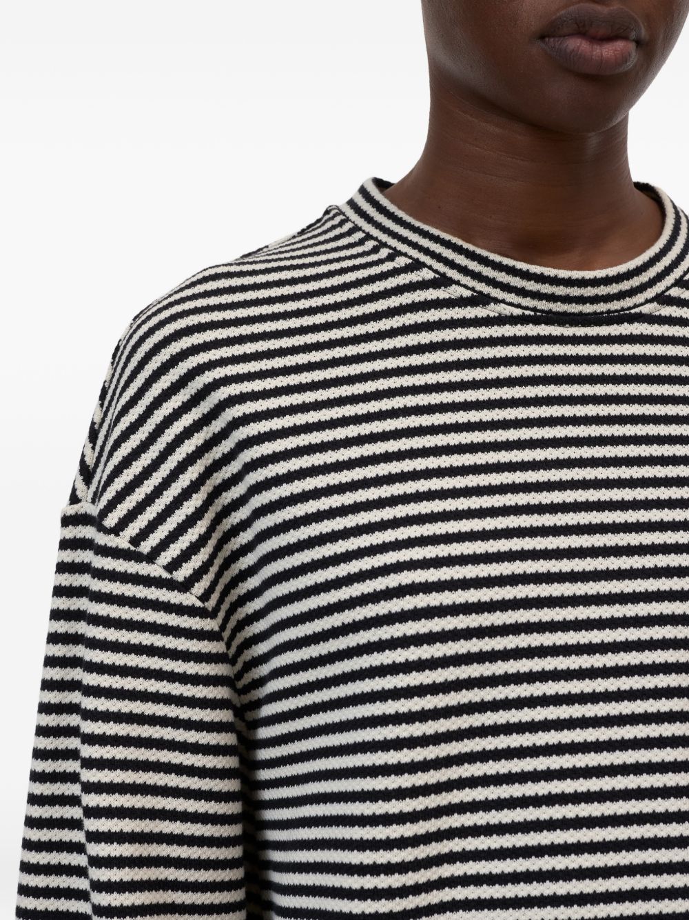off white striped long sleeves round neck ribbed detail straight hem Striped cotton t-shirt
