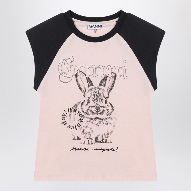 Ganni Pink T-shirt with logo print in organic cotton
