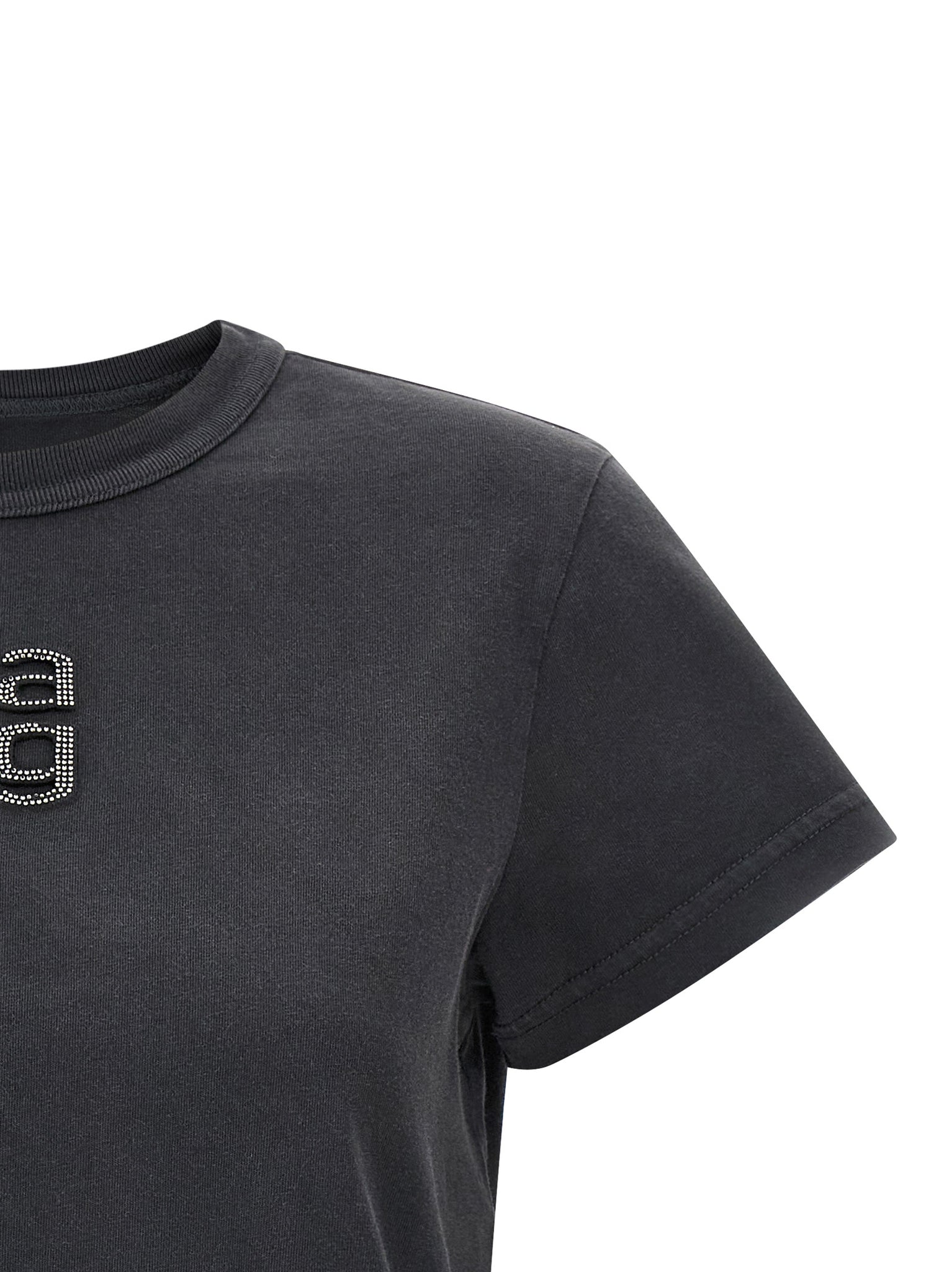 Discover a cropped, faded cotton jersey T by Alexander Wang that pairs subtle edge with everyday comfort and true-to-size fit. The Hotfix logo embroidery with front rhinestones adds polished detail suitable for day-to-night wear. Short sleeves and a classic crew neck keep the silhouette versatile while the fabric offers easy layering and all-day wearability.