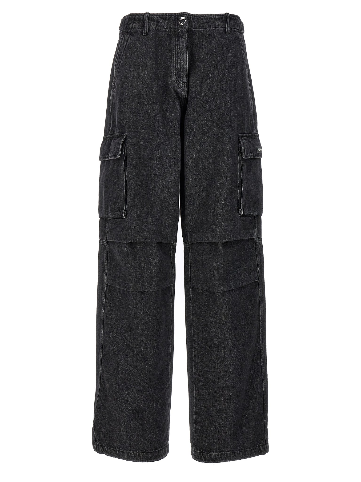 'Denim Wide Leg Cargo' cotton denim jeans with zip and button closure, pockets and wide leg style. Size and Fit - true to size fit