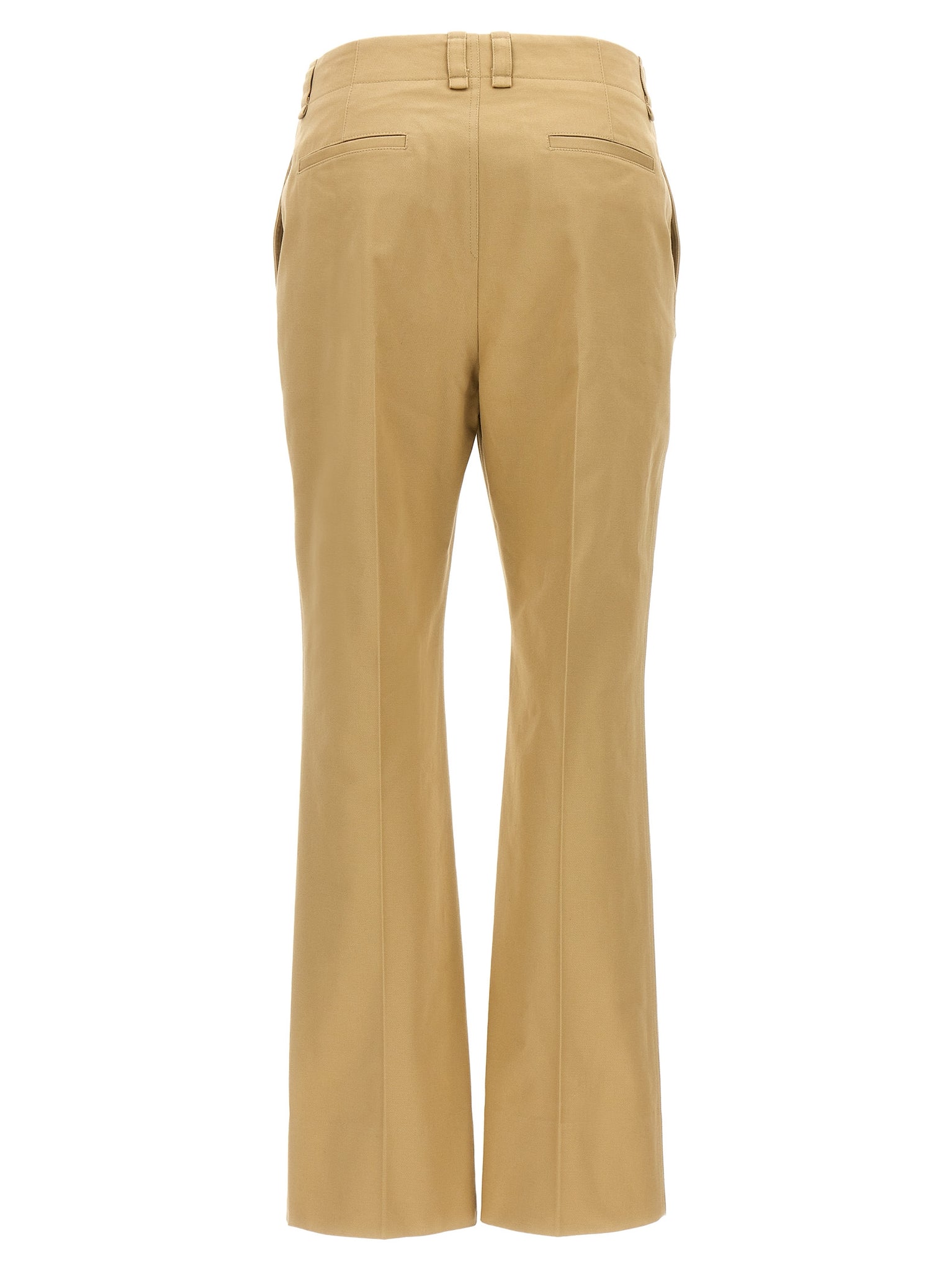 Cotton drill trousers, button closure, pockets, leg with stretched crease. Size and Fit - true to size fit French size