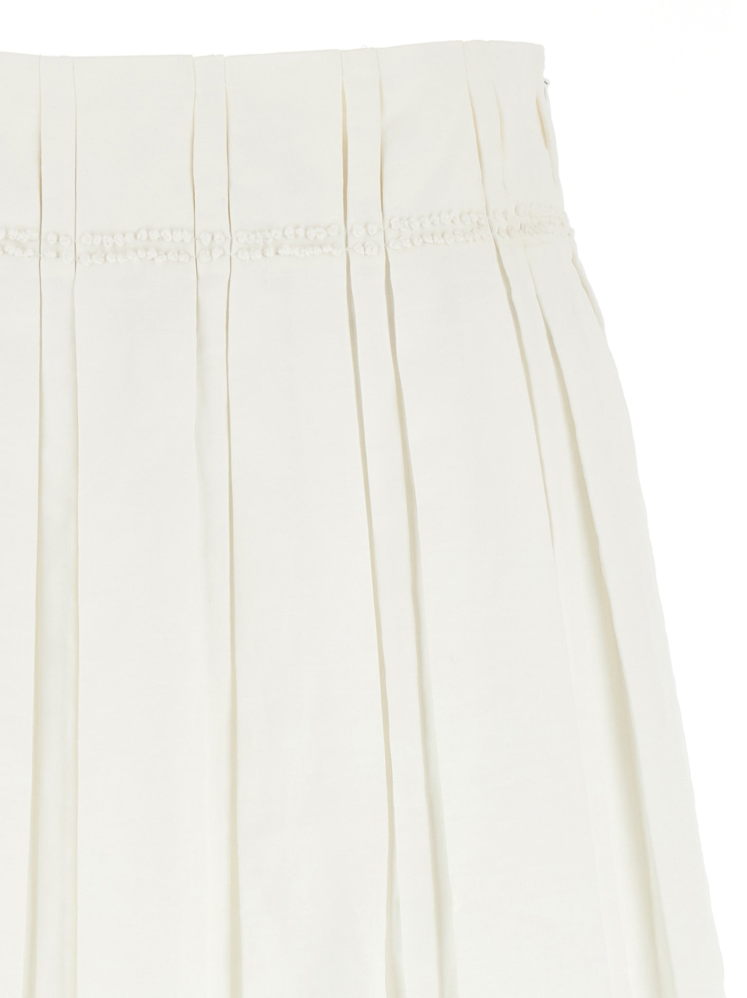 Pleated linen midi skirt, embroidered waist detail, side zip and hook closure. Size and Fit - True to size fit German sizing