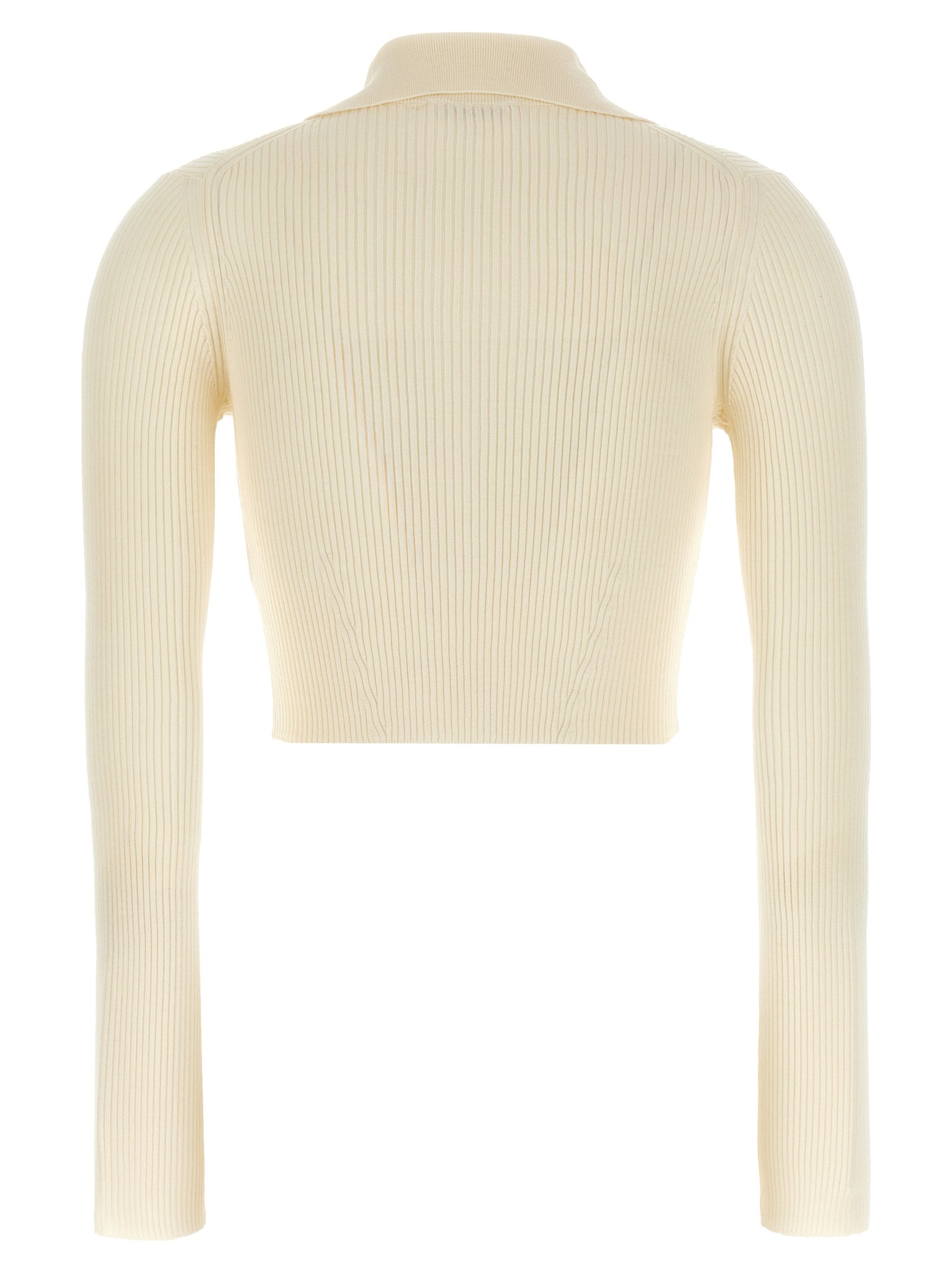 Ribbed stretch wool and viscose blend cardigan, crop model, collar, button closure, long sleeves. Size and Fit - true to size fit GERMAN size