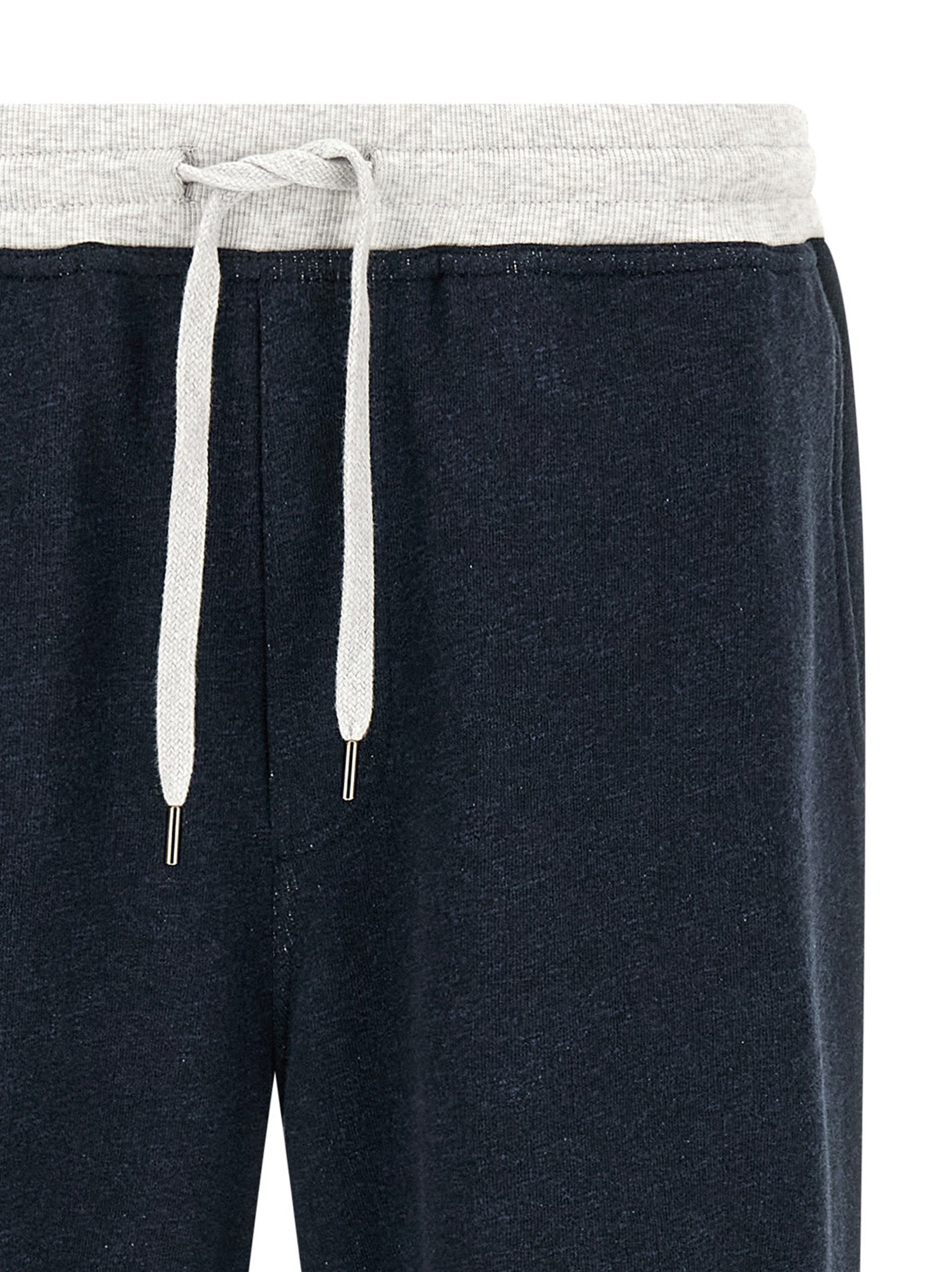 Joggers in mélange gauze cotton and linen blend, Knee pincer, Elastic with contrast drawstring at the waist, Trompe l'oeil flap, Pockets. Size and Fit - true to size fit