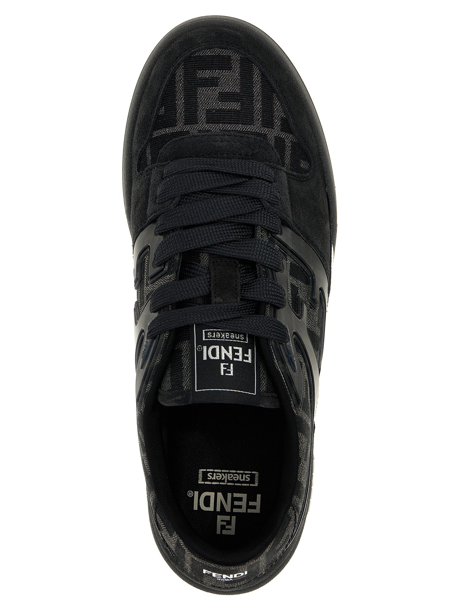 'fendi match' sneakers in ff jacquard fabric with suede and semi-transparent material details, Lace-up closure, Rubber sole. Size and Fit - UK MEN