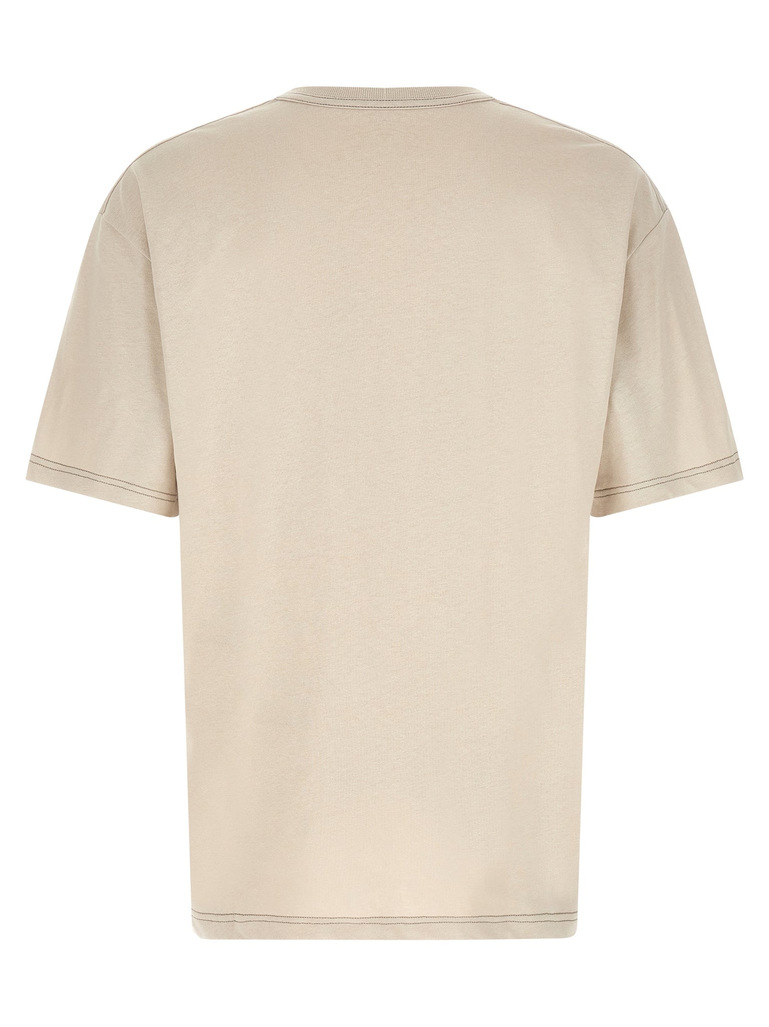 'boxy' cotton and linen blend t-shirt, Breast pocket, Crew neck, Short sleeves with dropped shoulders, Side slits on the hem. Size and Fit - oversized fit