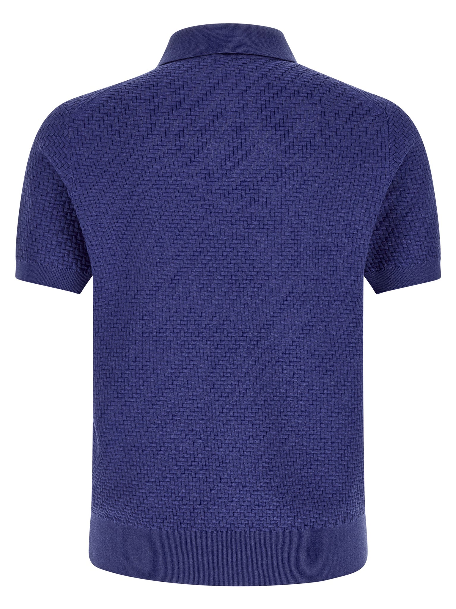 Polo shirt in cotton, silk and cashmere blend weaving 3D texture fineness 18 days, collar and buttons, short sleeves with cuffs, band on the hem. SUSTAINABLE: This garment contains GOTS certified cotton. The Global Organic Textile Standard (GOTS) is a voluntary standard obtained through independent third-party verification. Size and Fit - true to size fit