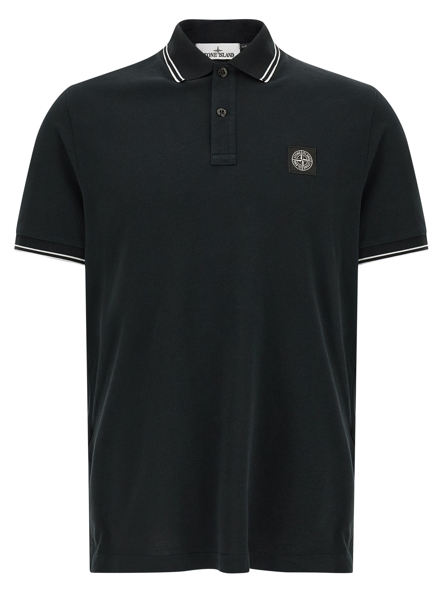 '2200010' cotton piqué polo shirt with contrast details, front 'Compass' logo patch, collar and buttons, short cuffed sleeves, side slits._x000D_ SUSTAINABLE: This product is made of organic cotton. Size and Fit - Slim fit