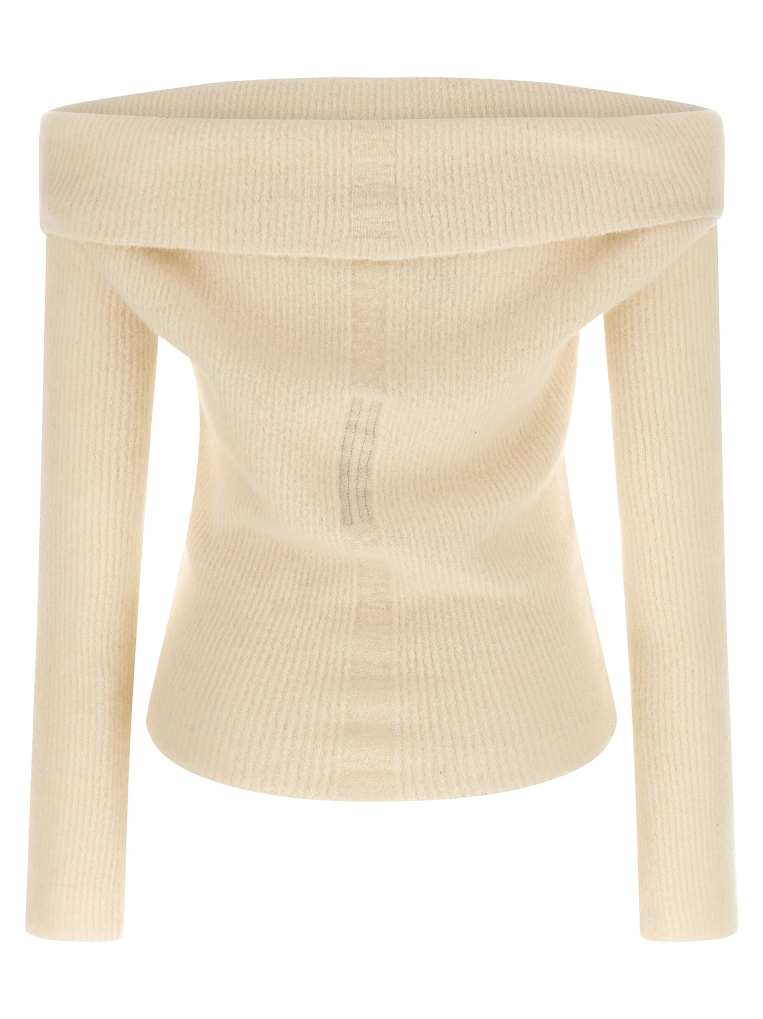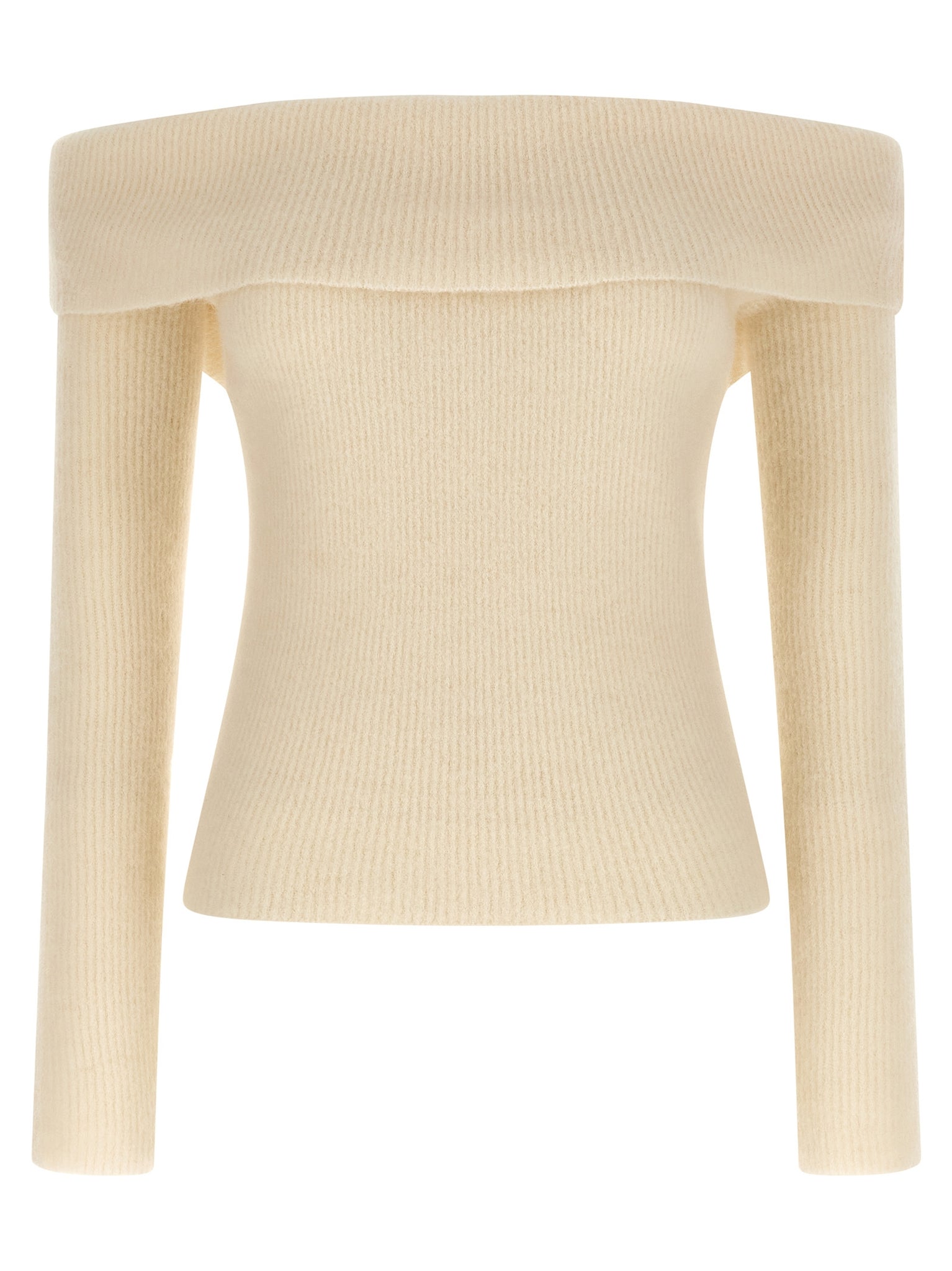 'ls cowl' ribbed wool sweater off-the-shoulder style with turned-up top, Long sleeves. Size and Fit - true to size fit