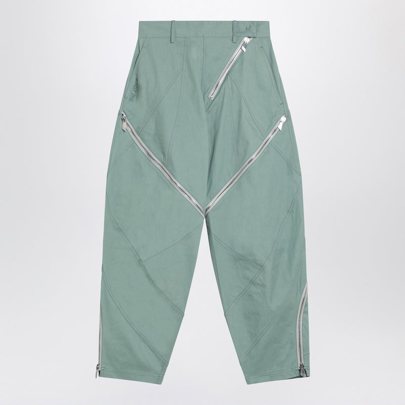 Pantalón verde salvia con cremallera Attico en mezcla de algodón