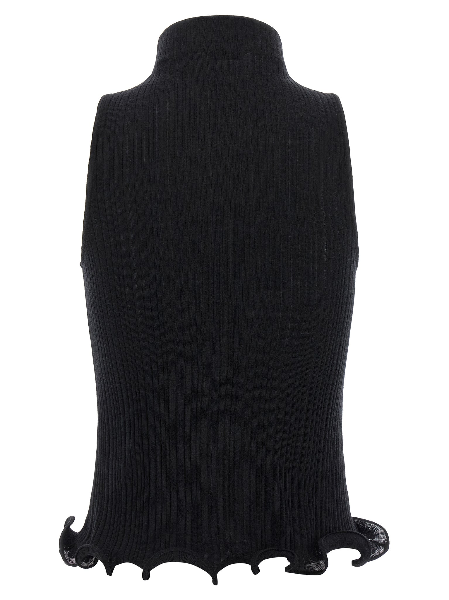 Ribbed cotton jersey top, Front logo embroidery, High neck, Ruffles on the hem. Size and Fit - Slim fitMade in: Italy