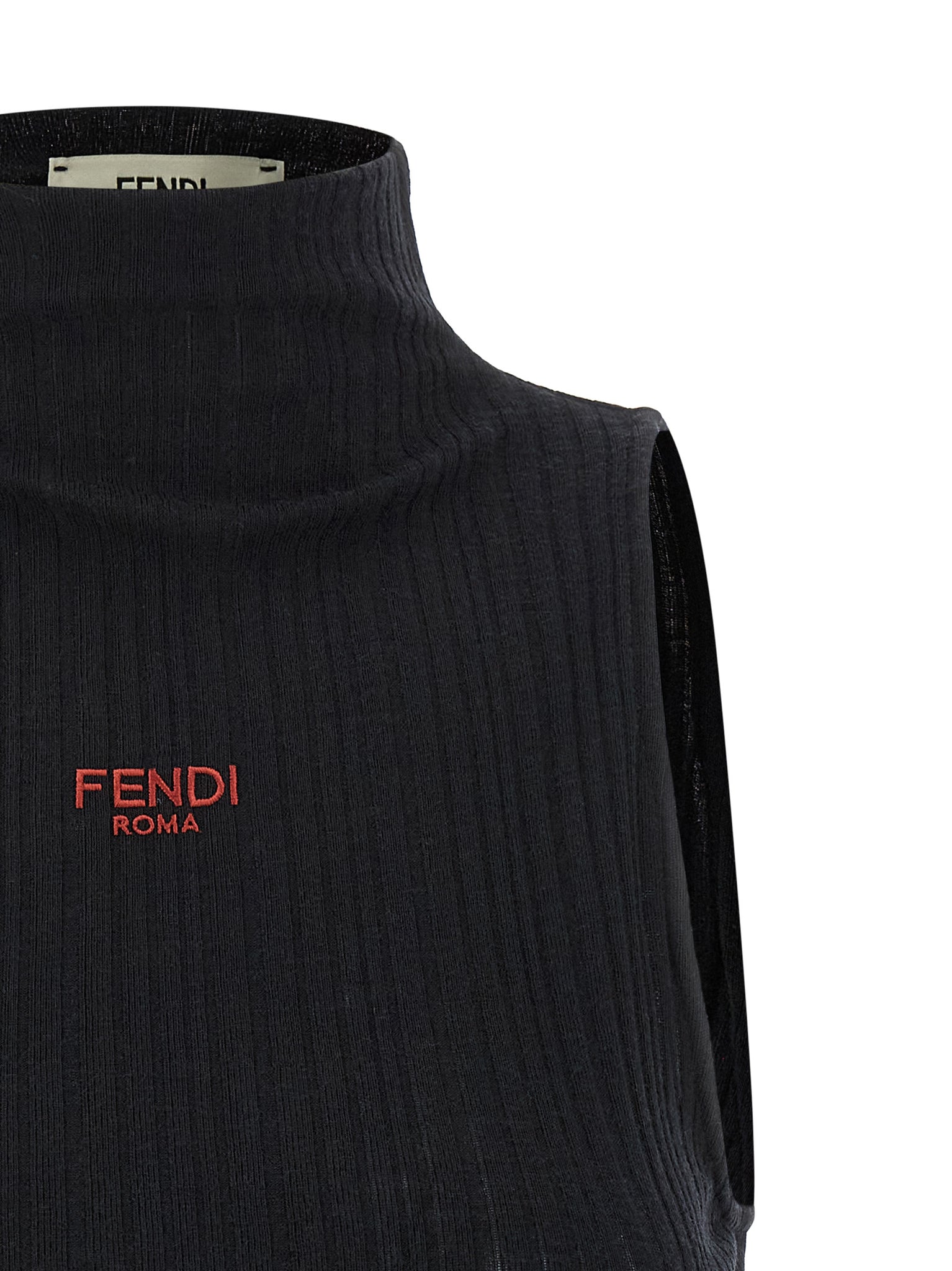Fendi Ruffled Top — Black Ribbed Cotton, Slim Fit