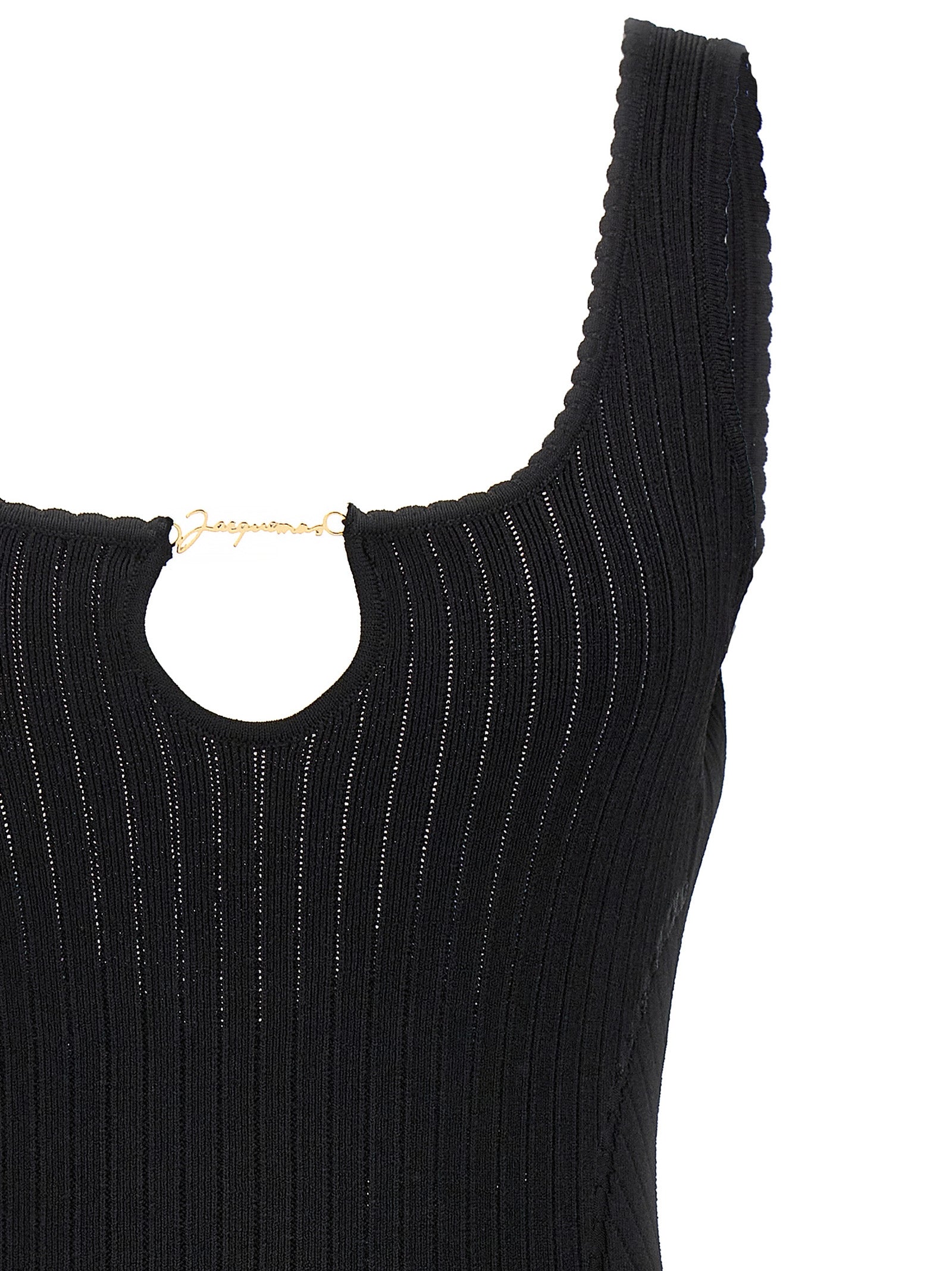'la mini robe sierra' dress in ribbed viscose blend with front cut-out detail with gold metal logo charm, Sleeveless. Size and Fit - true to size fit French sizeMade in: Portugal