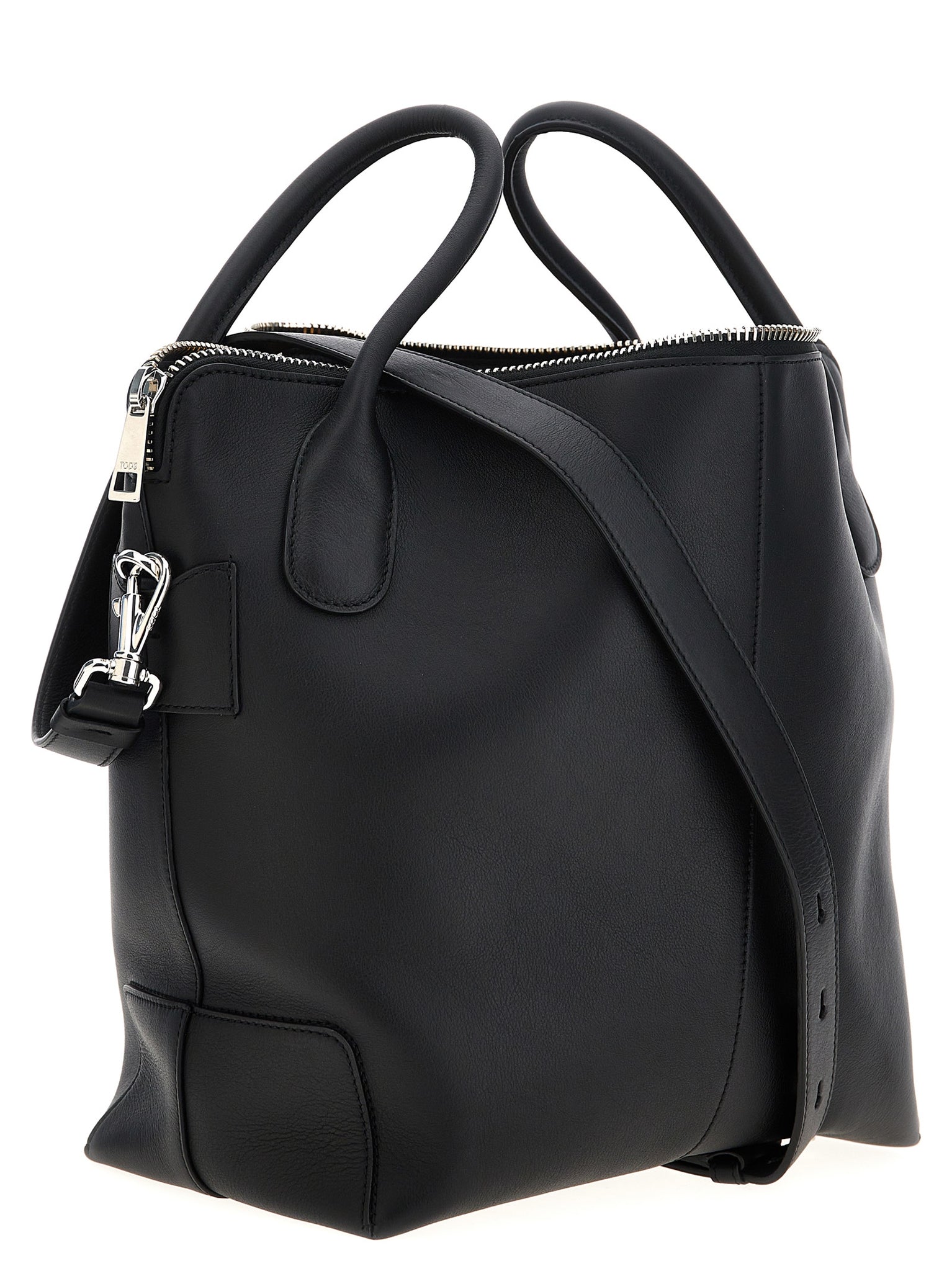 'swing' medium leather handbag, Zip closure, Double handle, Adjustable and removable shoulder strap. Size and Fit - W 42 x H 27 x D 27 cm