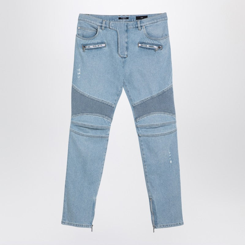 Jean biker en denim bleu clair Balmain