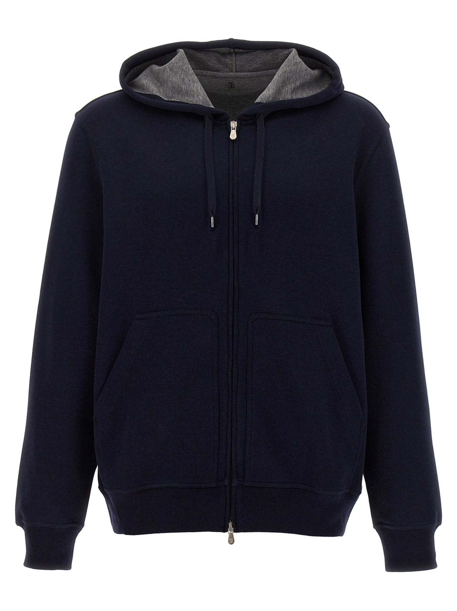 Cotton blend hoodie with zip closure, pockets, long cuffed sleeves. Size and Fit - True to size fit