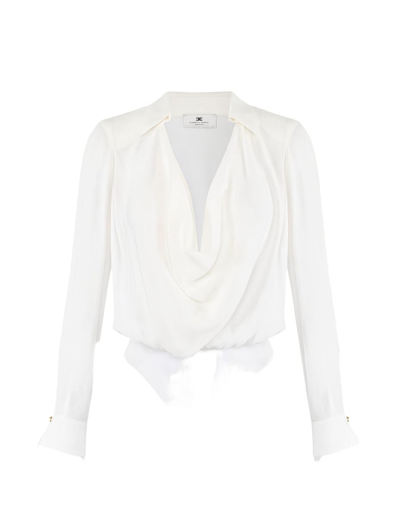 Elisabetta Franchi Top Ivory — Draped Shirt Bodysuit