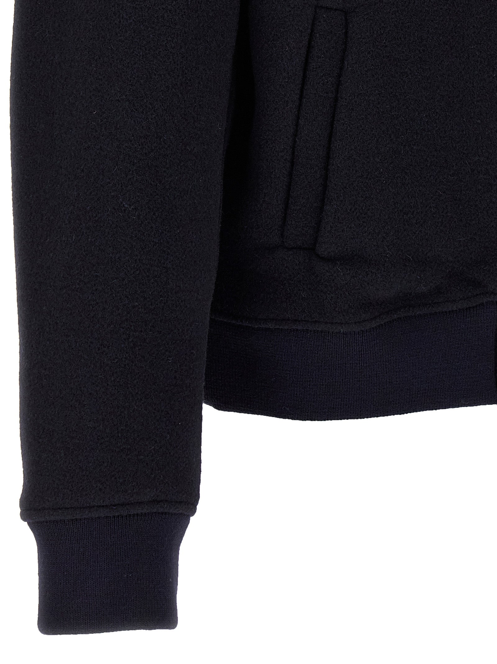 Wool bomber jacket with front pegasus embroidery, zip closure, side pockets, ribbed knit collar and cuffs. Size and Fit - True to size fit