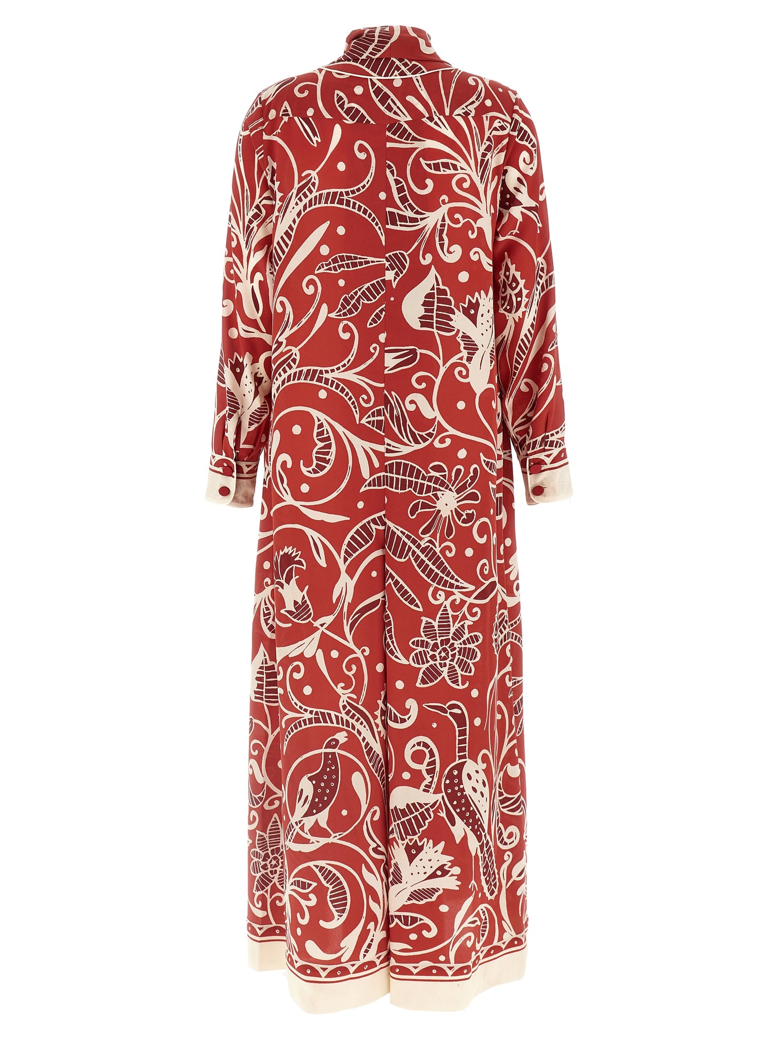 'euripila' crepe de chine silk dress with all-over print, Shirt style with front buttons, Shawl. Size and Fit - true to size fit
