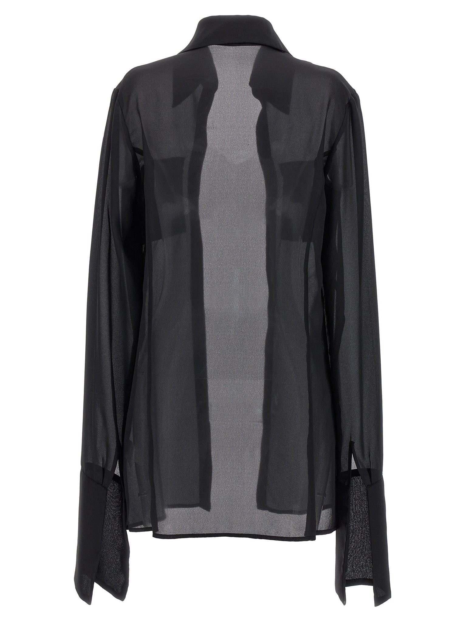 Georgette' shirt in a transparent fabric with front pockets, No fastening. Size and Fit - True to size fit us size