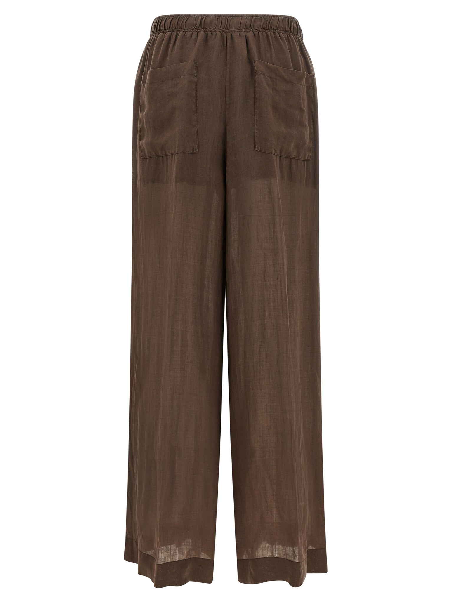 Linen blend pants, Palazzo model with wide and straight leg, Elastic waistband, Trompe l'oeil flap, Pockets. Size and Fit - true to size fitMade in: Italy