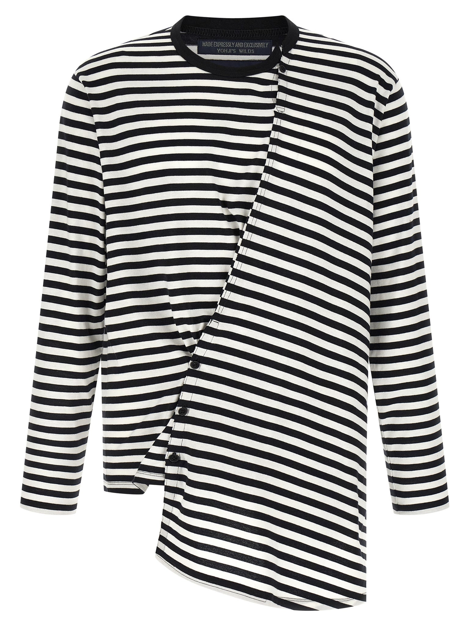 'Paneled' striped cotton jersey sweater, crew neck Loose fit with asymmetric details, panels joined on the front with buttons and buttonholes, dropped shoulders, long sleeves. Size and Fit - Oversized fit