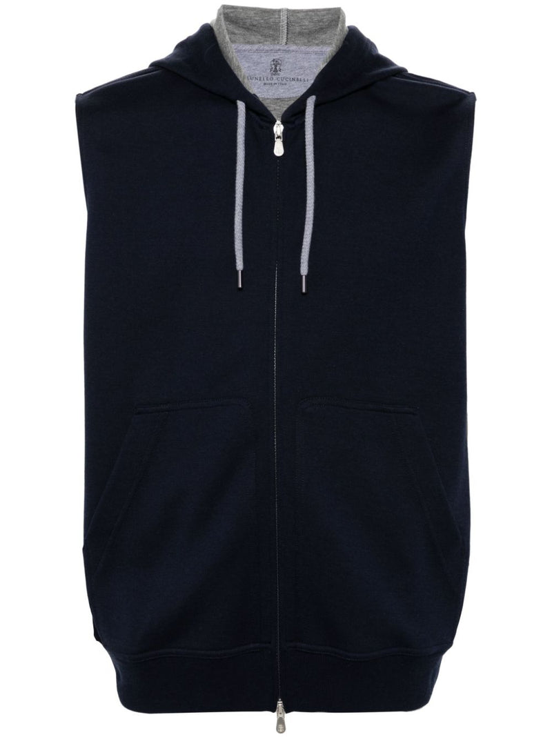 Pulls Brunello Cucinelli Gilet à capuche en coton et cachemire bleu