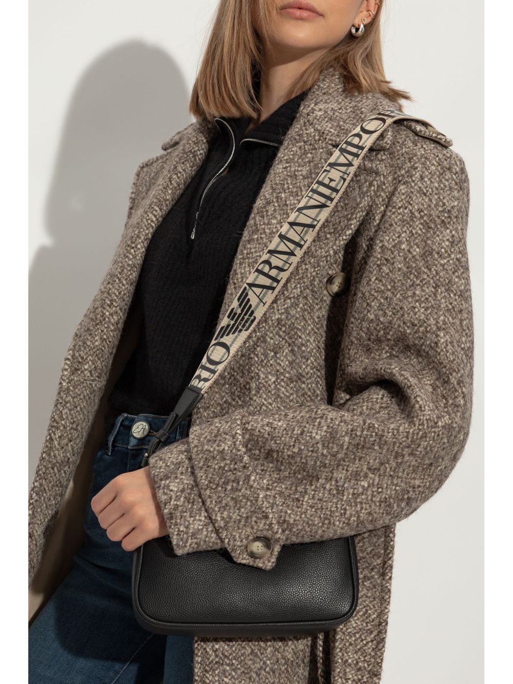 This Emporio Armani mini baguette shoulder bag in black offers a compact, structured silhouette that organizes essentials with a main compartment and internal slip pocket. The pebbled faux leather exterior and logo-stamped front create a polished look while the top zip and adjustable, detachable logo-print strap add security and carrying flexibility. Sized 23.0 cm W x 12.5 cm H x 6.0 cm D, it’s designed for streamlined daily use and easy transitions from day to evening.