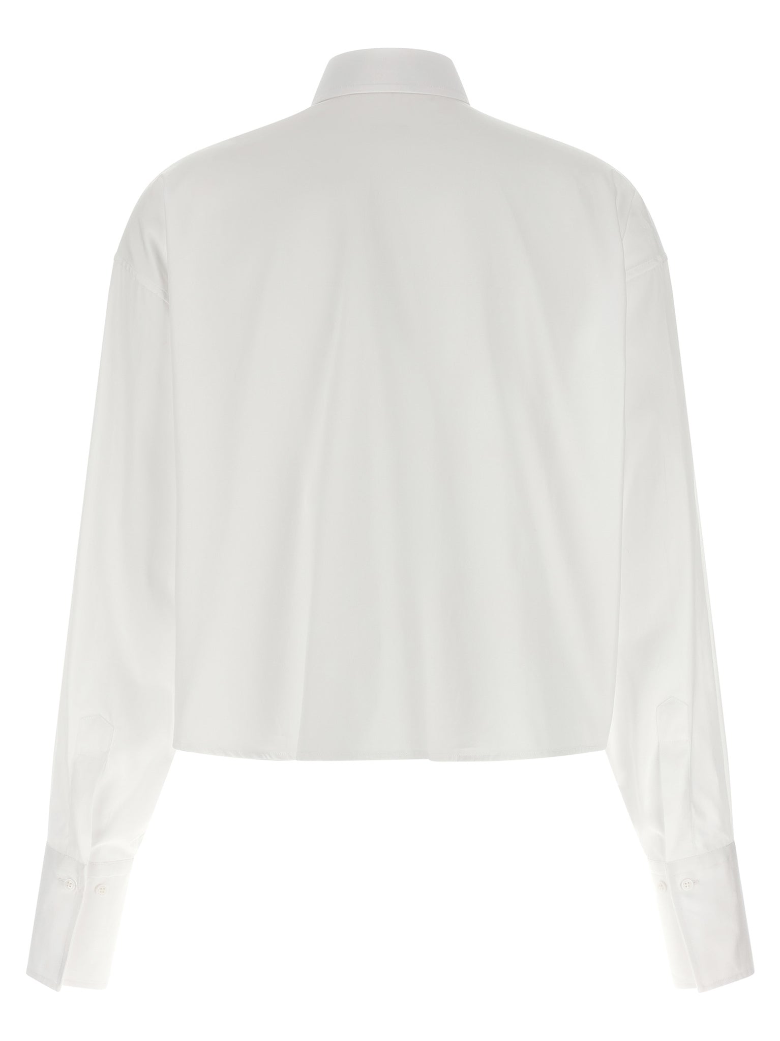 Cotton poplin shirt, crop model, button closure with front plastron detail, long wide sleeves with cuffs. Size and Fit - Comfort fit