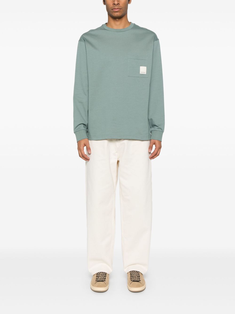 vert de mer poche plaquée sur la poitrine col ras du cou T-shirt manches longues en coton bio avec logo C/Taschino. Taille et coupe : Ce modèle taille normalement. Nous vous recommandons de prendre votre taille habituelle. Le mannequin mesure 1,84 m et porte une taille M.