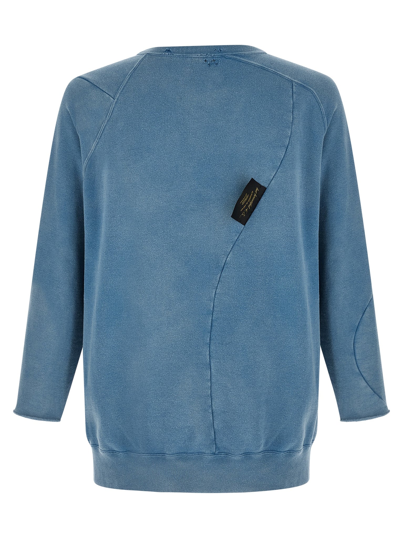 'uc1f4808-1' sweatshirt in gauze délavé used-effect cotton with small rips, Graphic print with worn front effect finish, Crew neck, 3/4 raglan sleeves with raw cut hem, Asymmetric stitching and back logo patch, Band on the hem. Size and Fit - oversized fit