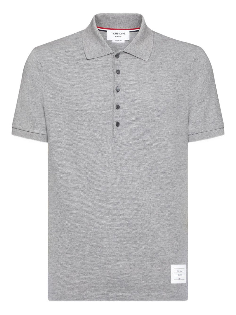 light grey cotton piqué weave panelled design polo collar short sleeves signature 4-Bar stripe logo tag signature grosgrain loop tab straight hem short front button fastening Cotton polo shirt