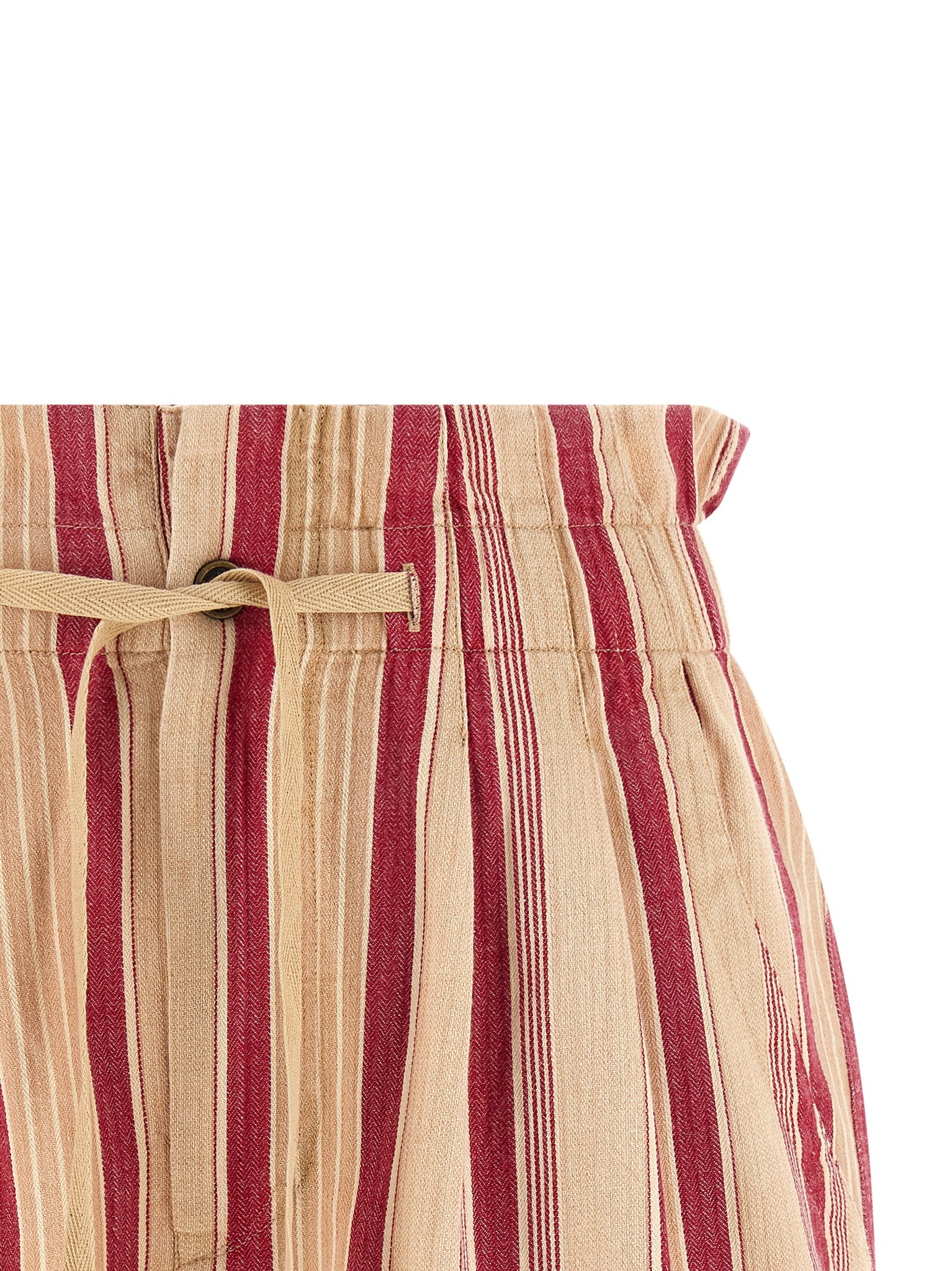 'nirma' striped cotton canvas shorts, Elastic waistband with gathered and adjustable drawstring, Front closure with automatic and zip, Side pockets, Turn-up hem. Size and Fit - True to size fit French sizingMade in: India