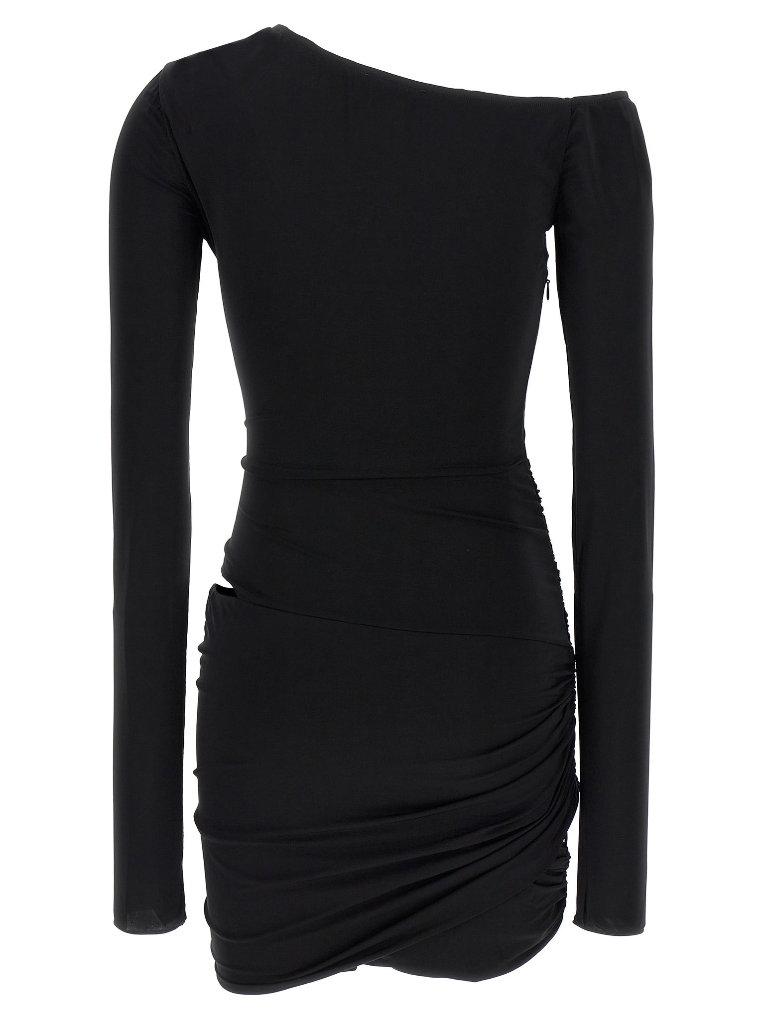 Asymmetrical stretch fabric dress with 'cut out' detail on the side, Round neckline and long sleeves. Size and Fit - True to size fit