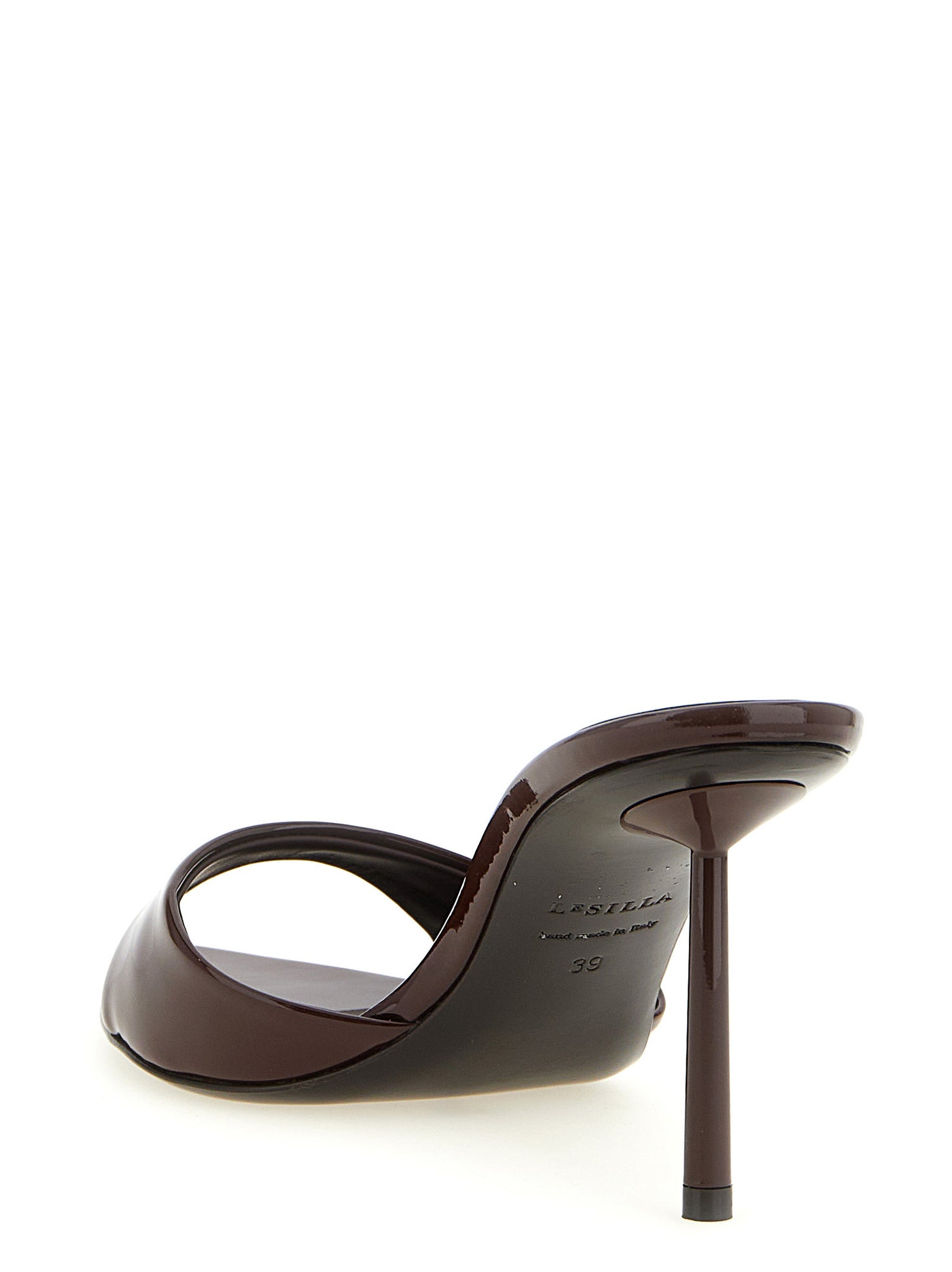 Discover refined evening footwear that elevates silhouettes while ensuring stable wear thanks to a slender stiletto and pointed toe. These patent calf leather sandals offer a polished look with a leather sole for reliable step feel and lasting structure. Designed by Le Silla for adult women, the brown finish complements formal and dressy ensembles with versatile elegance.