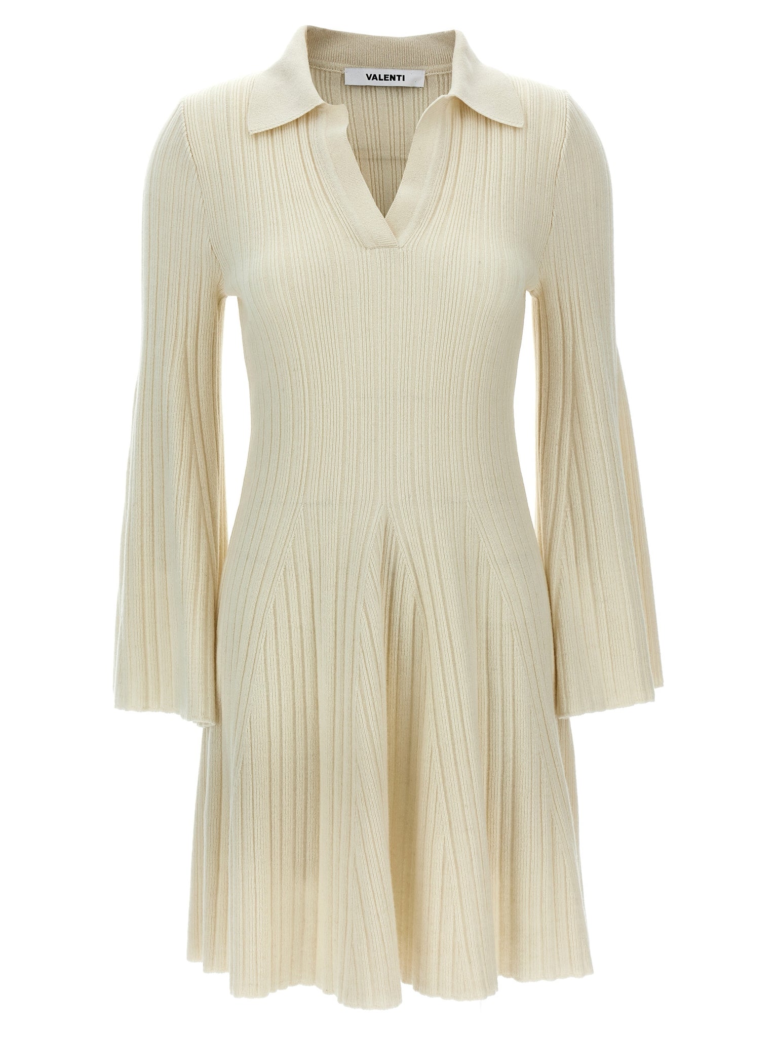 'hester skater' ribbed cashmere dress with v-neck, Collar, Long sleeves. Size and Fit - true to size fit