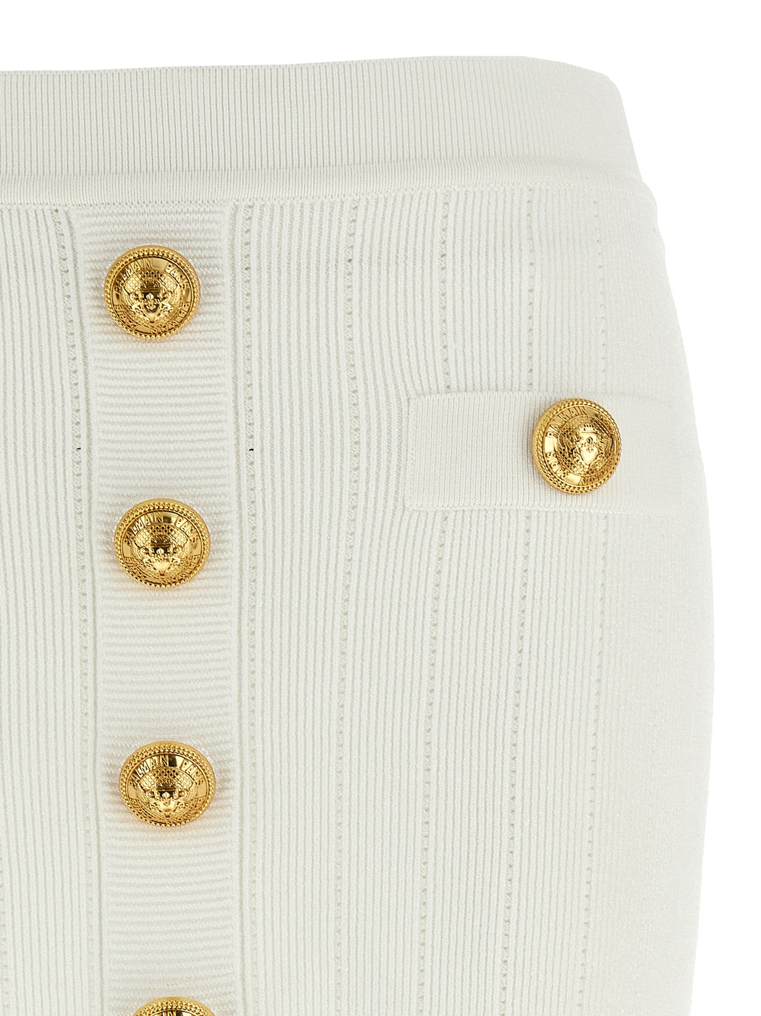 Stretch viscose blend skirt with 'Chiocciola' logo buttons, trompe-l'œil pockets and back zip closure. Size and Fit - true to size fit French size