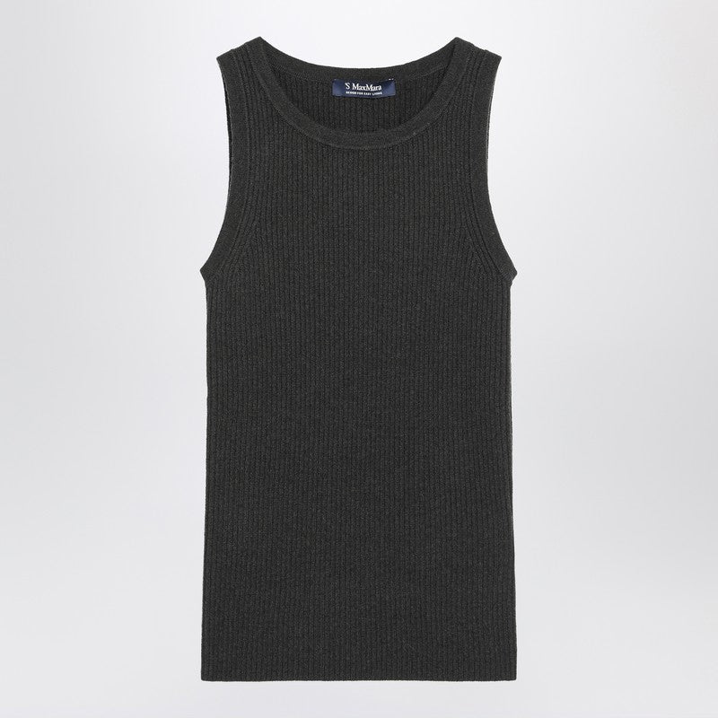 Débardeur en laine et cachemire côtelés vert S Max Mara